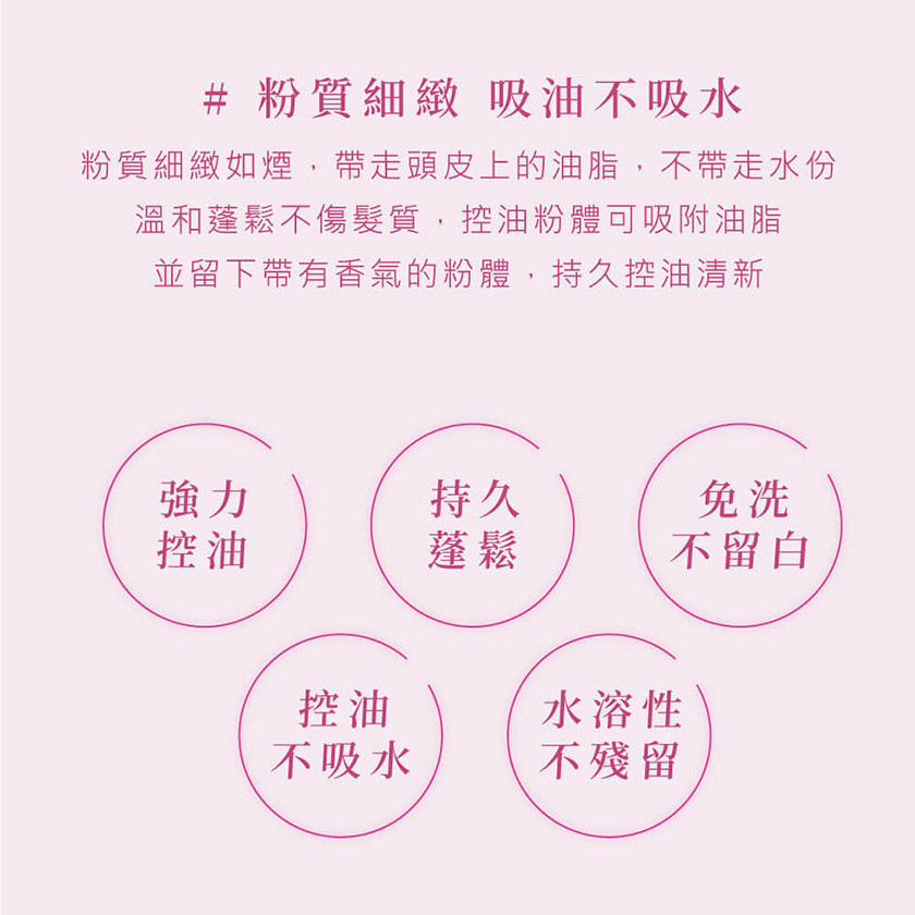 -粉質細緻如煙,帶走頭皮上的油脂