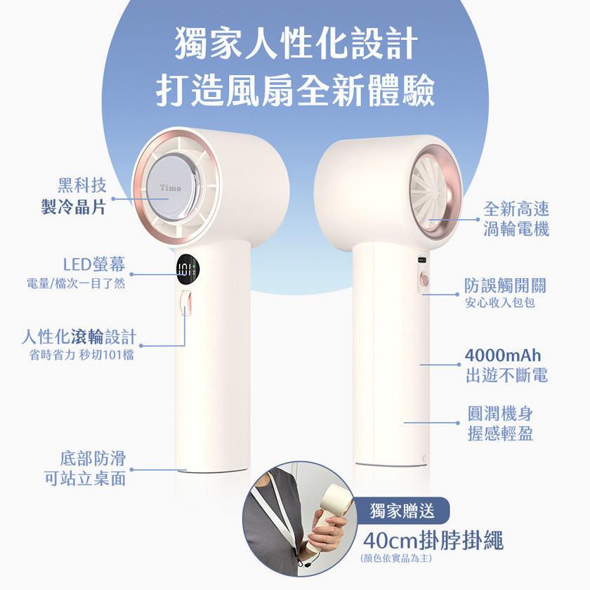 商品詳情 Timo 冰河時代冰鎮強力風扇 -快速製冷,迅速降溫-101檔風速,滾輪調節 -1鍵開關,操作更簡易-防誤觸開關,安全便利-附掛繩,牢固便攜 Timo 冰河時代冰鎮強力風扇 TWD $890 TWD$ 890