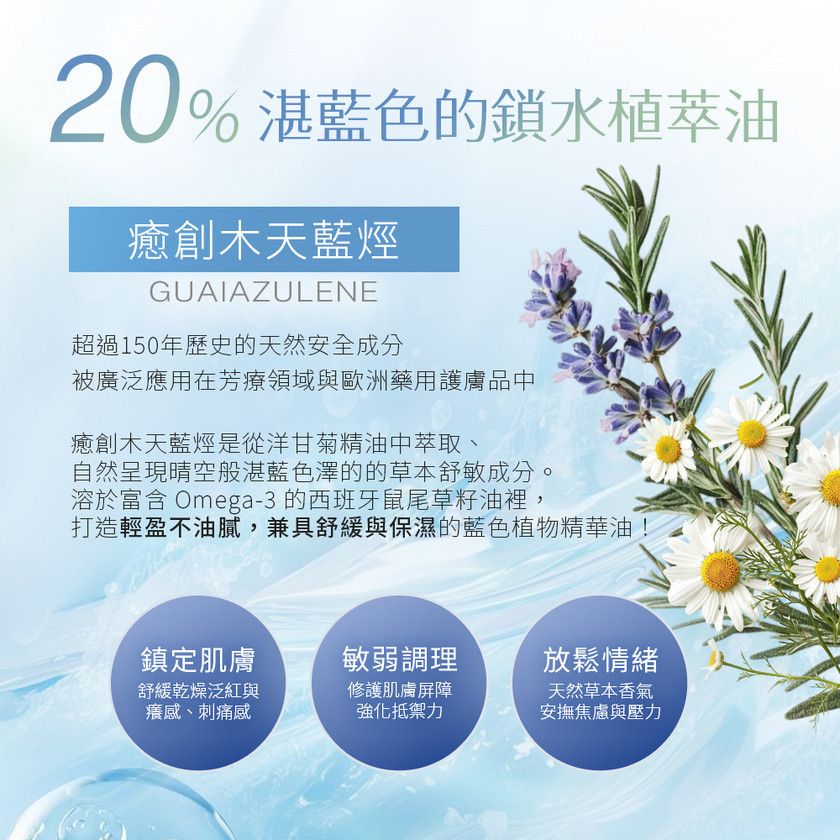 -添加輕盈的西班牙鼠尾草籽油,能有效鎖住水分、修護肌膚屏障