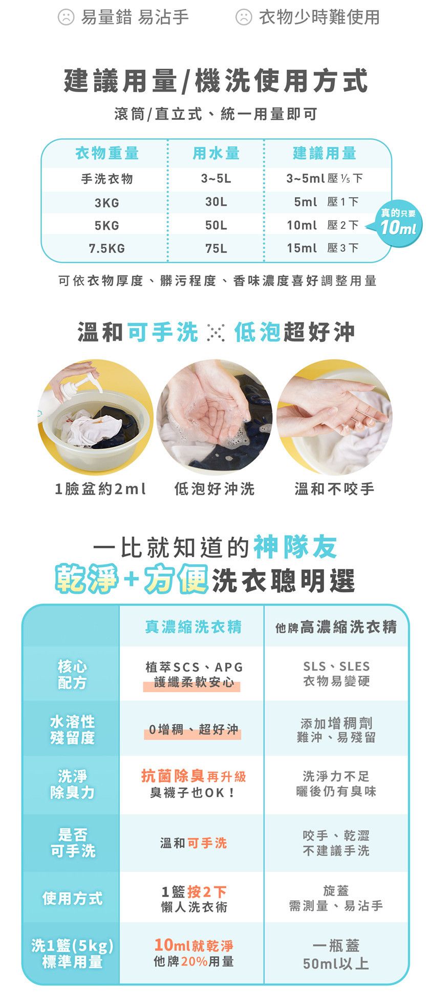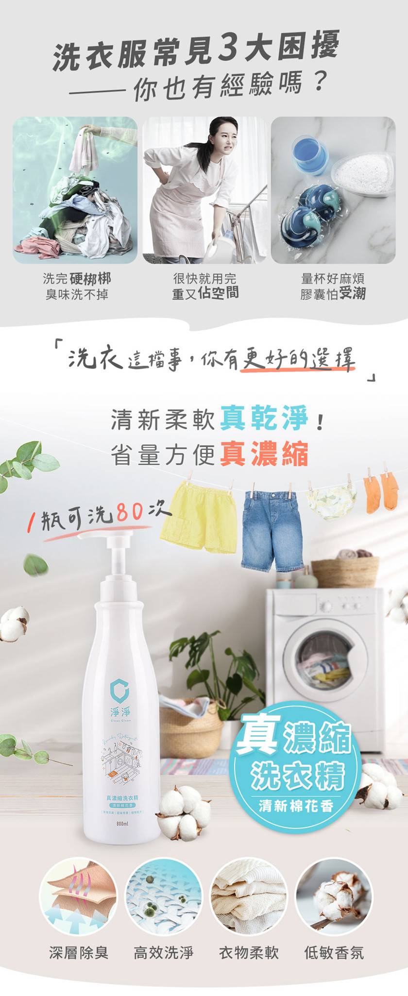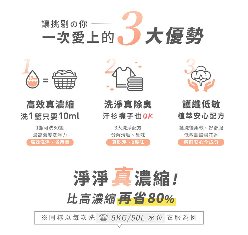 商品詳情 淨淨 真濃縮洗衣精組 -只要10ml洗整籃5公斤衣物,省時省力! -獨家真濃縮超省用量,小小一瓶,洗衣乾淨滿分! -深層去污力,頑固污漬全擊敗 -手洗沒問題,安心洗淨不咬手 -呵護衣物,穿得好舒服 -奈米抗菌劑,超強除臭,持久抗菌,室內陰曬也OK零異味 -護纖配方,還可以讓衣物更柔軟,不僵硬 -不用柔軟精,也可以舒服穿一整天 淨淨 真濃縮洗衣精組 TWD $1,050 TWD$ 1,050