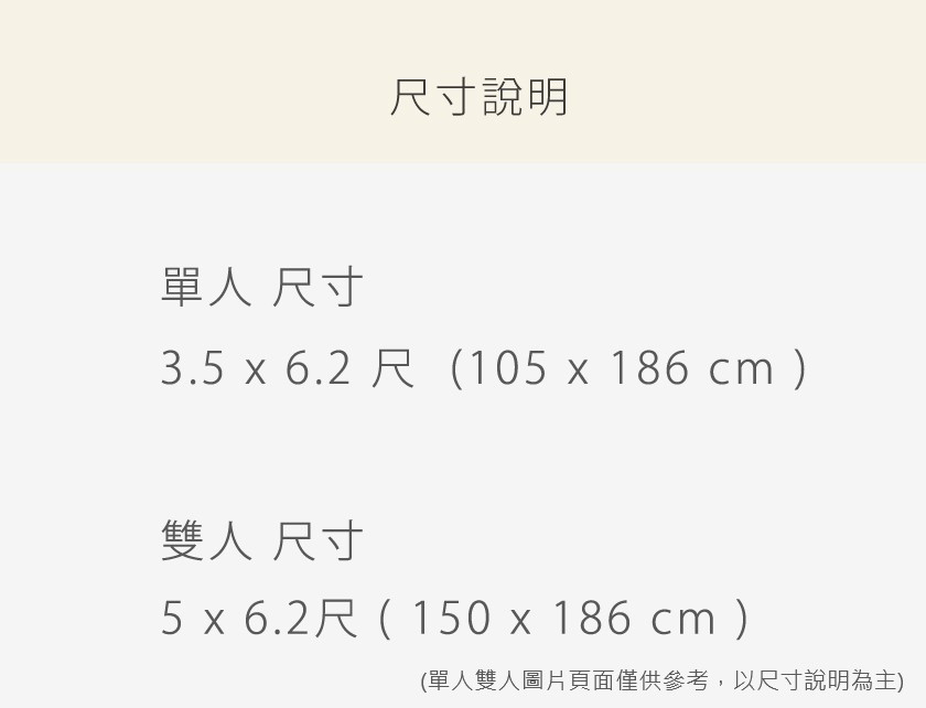 🔴單人雙人圖片頁面僅供參考,以尺寸說明為主