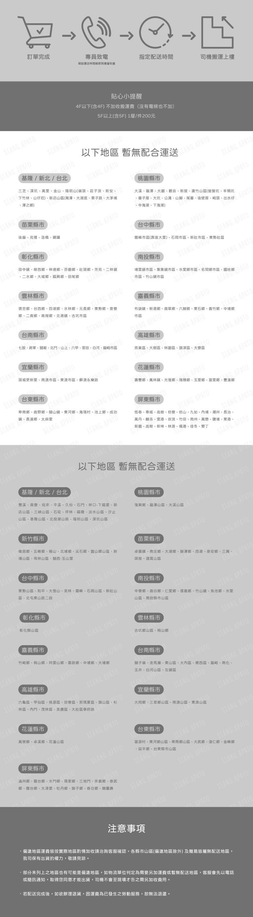 🔴恕無法經樓梯徒手搬運,無電梯之公寓,樓梯搬運自4樓起算(不含4樓),每床、每層樓加收200元搬運費,配送員會於現場收取現金