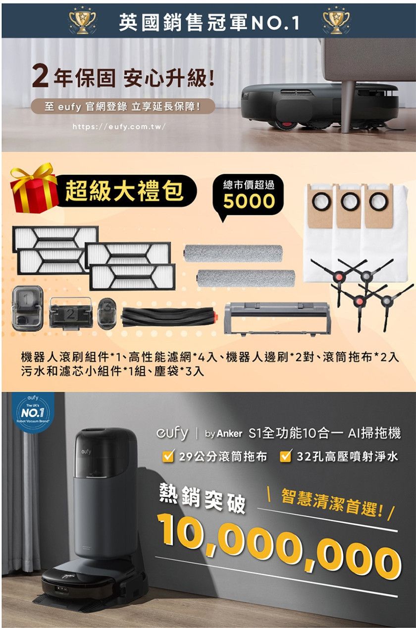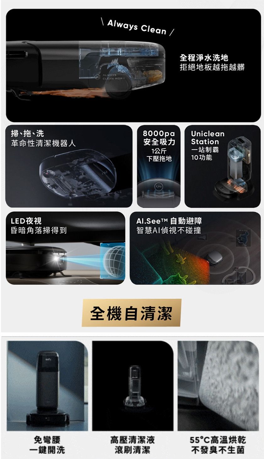 EUFY悠飛 全能10合1AI洗拖掃地機器人