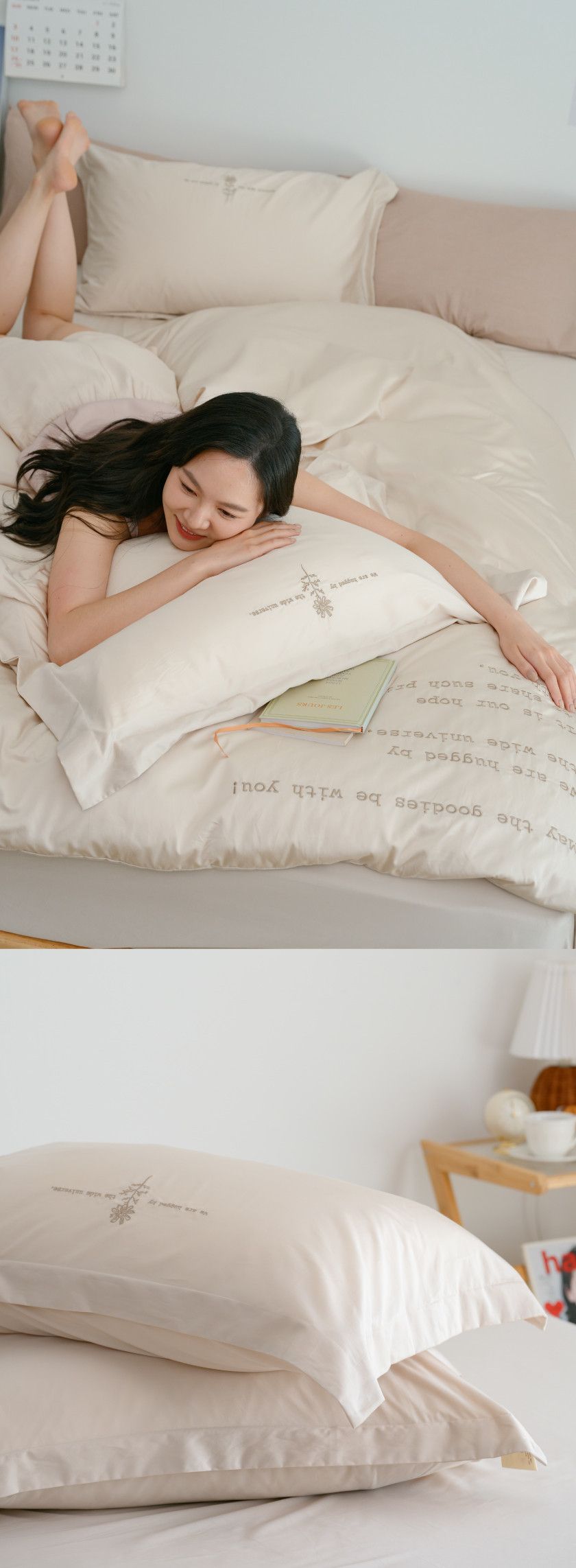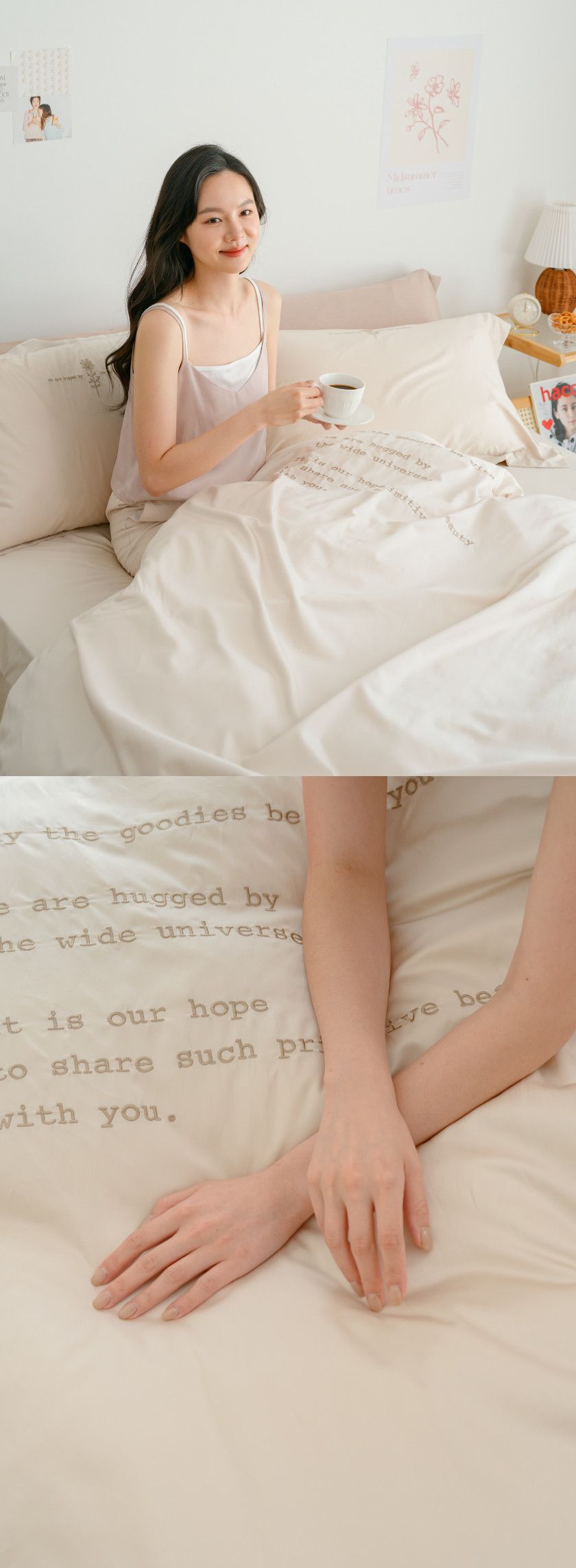-給你絕佳細緻觸感,搭配奶茶色系精緻刺繡,獨一無二的夢幻床寢