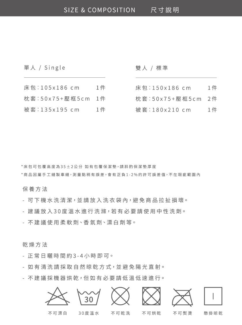 -61%天絲+39%長絨棉,吸濕透氣、手感紮實