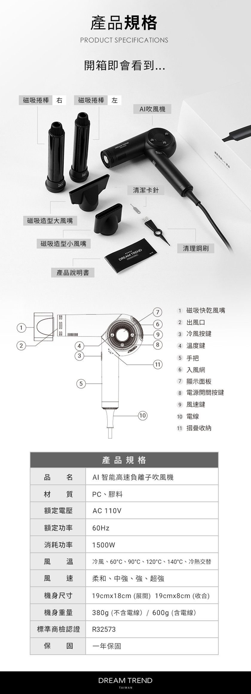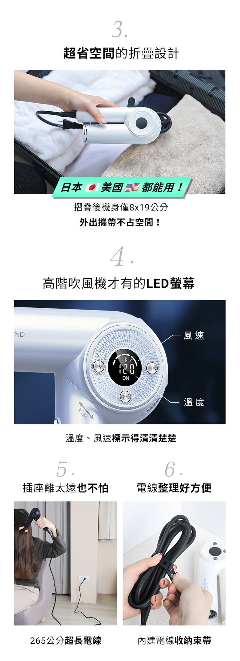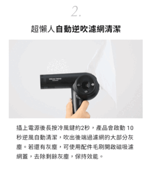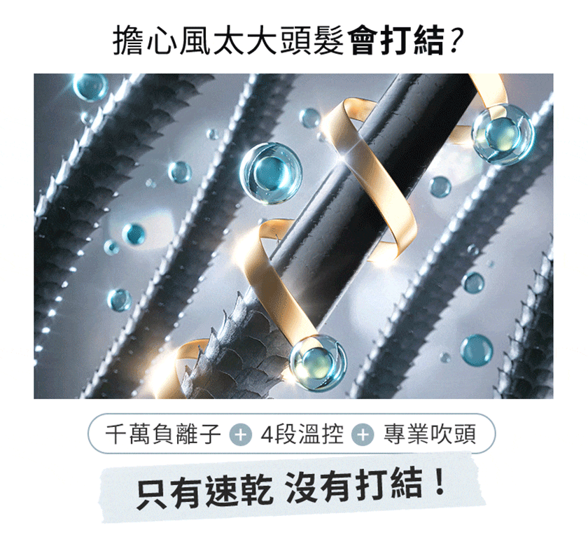 -強效負離子護髮:每秒釋放千萬負離子,有效減少靜電,撫平毛躁