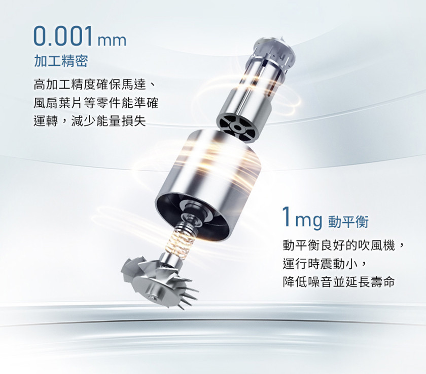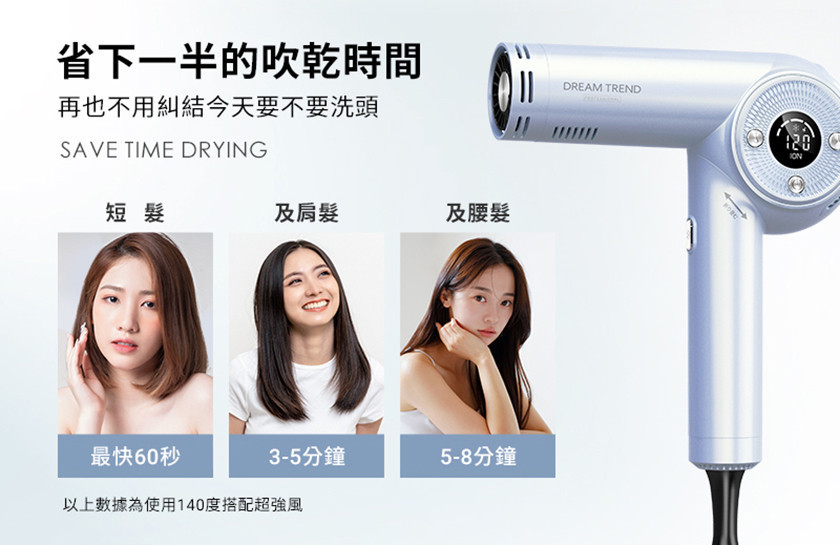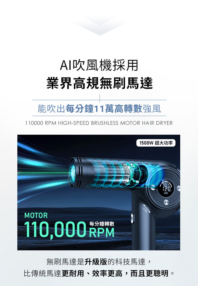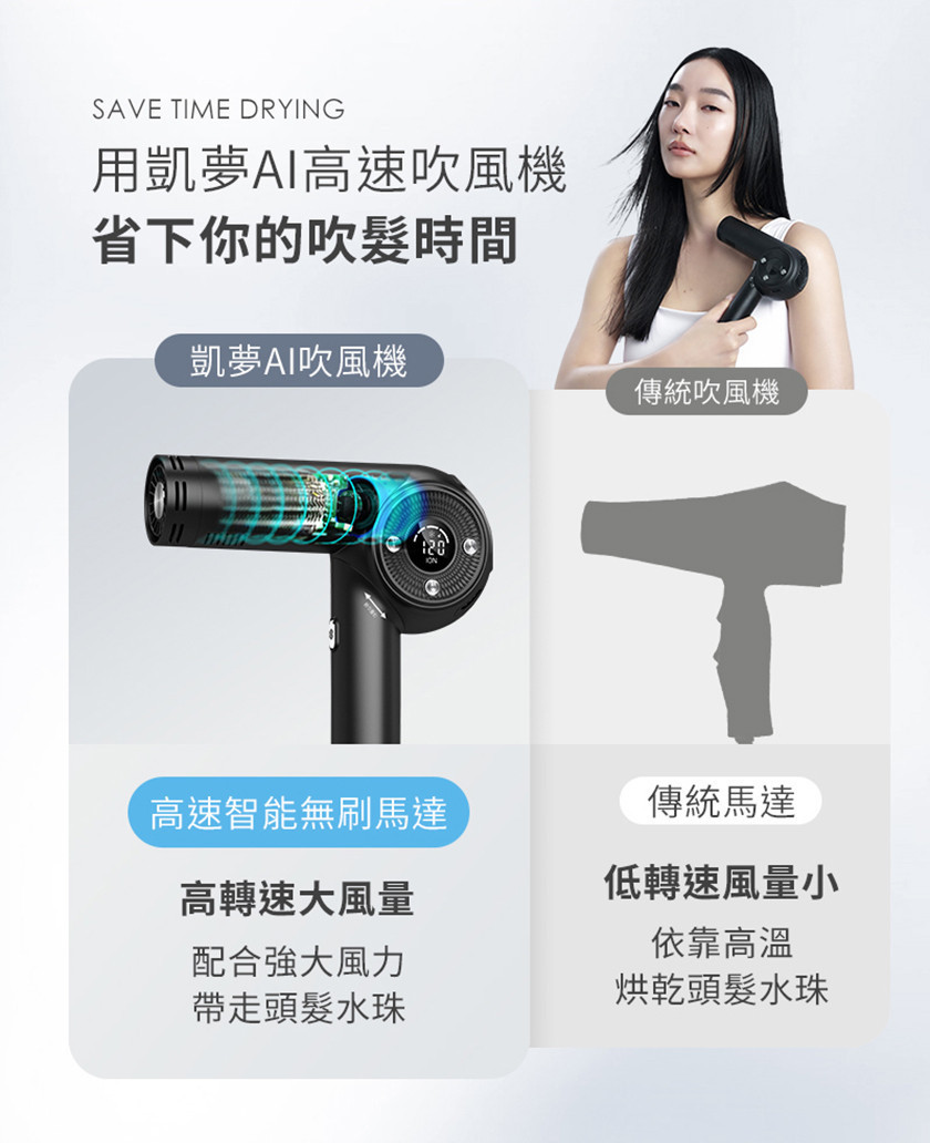 -高速乾髮技術:搭載無刷高速馬達,風速更快,乾髮更高效