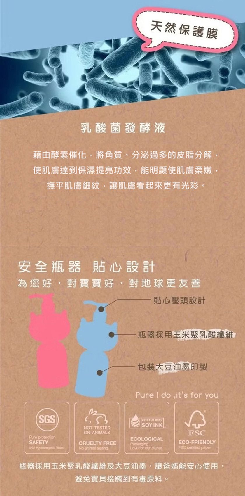 -由內而外使用天然素材,玉米澱粉瓶身、大豆油墨印刷,100%生物分解,不含石化毒素,寶貝咬咬都不怕