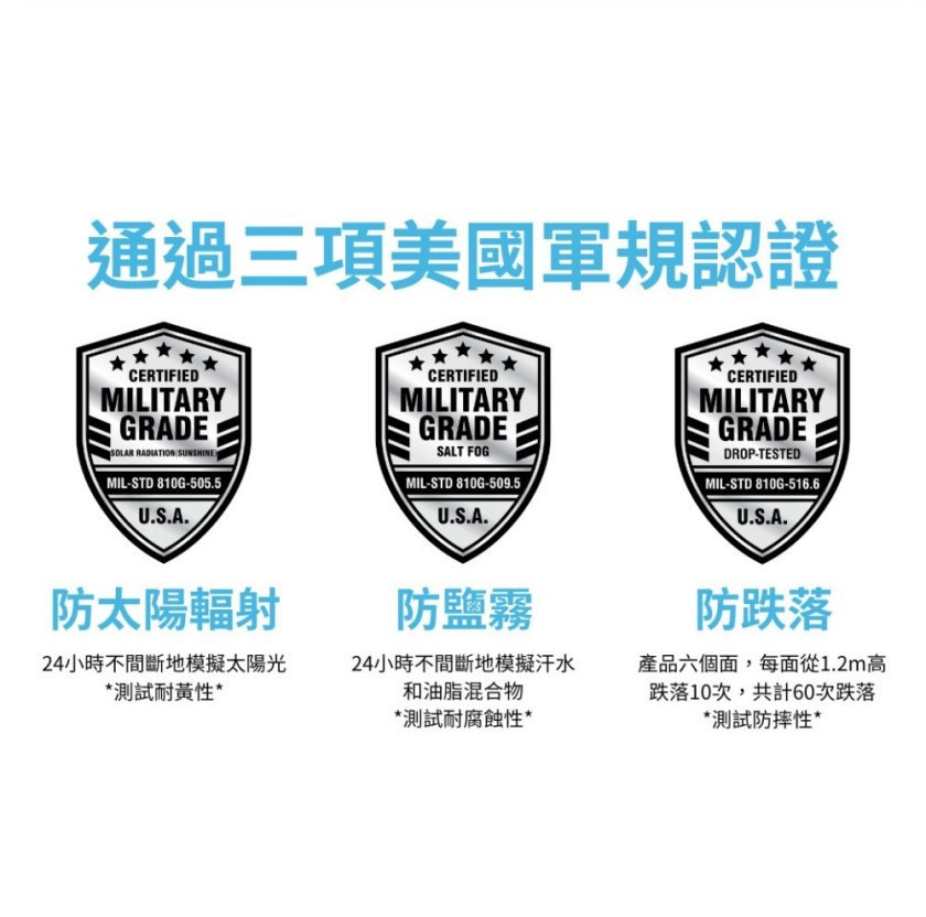 -紅點設計大獎,通過防太陽輻射、防鹽霧、防跌落三項美軍認證10mm後環保全包式耐黃氣墊
