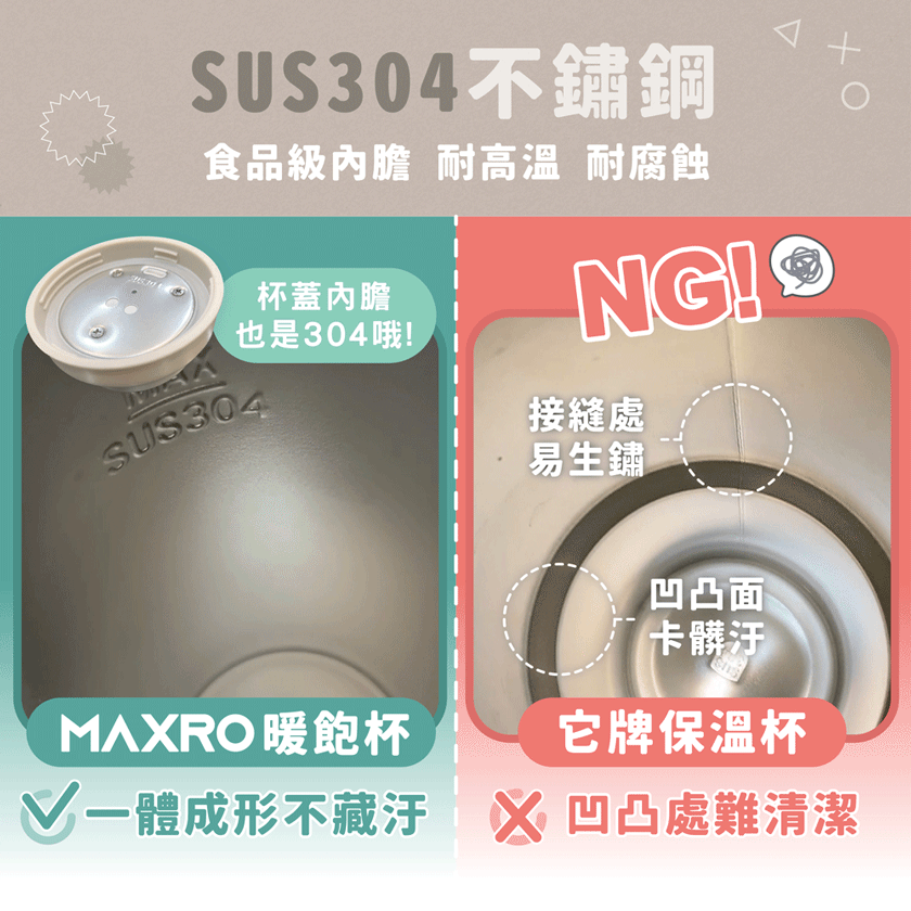 -SUS304食品級不銹鋼,一體式內膽,不用擔心縫隙生鏽