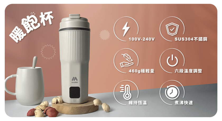 MAXRO 暖飽杯雙電壓智能溫控熱水壺.贈品牌提袋