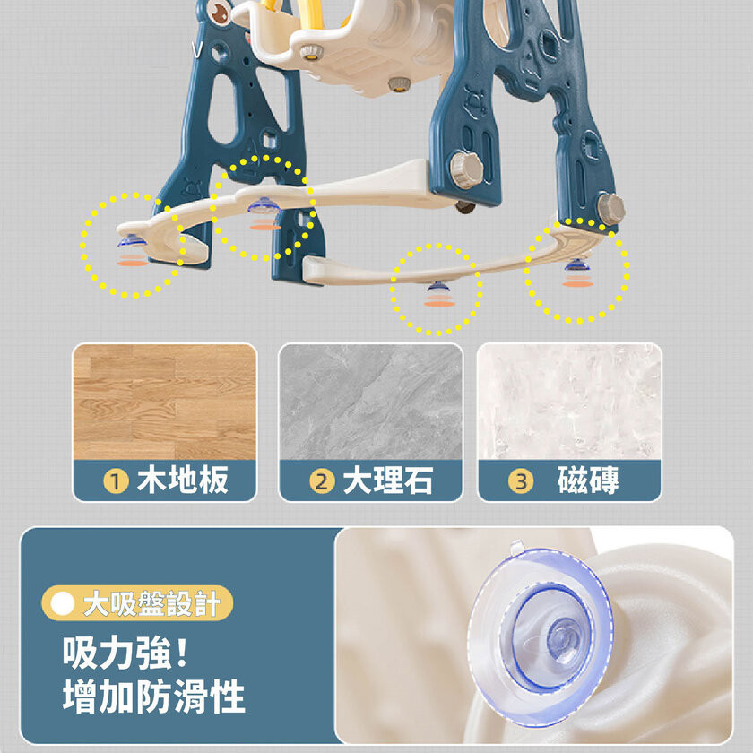 -加高擋板滑梯,加速區、緩衝區、停止區分段設計,滑起來更順、更安全