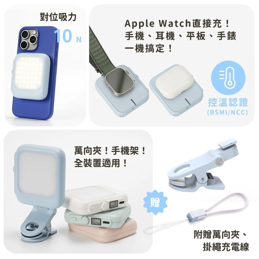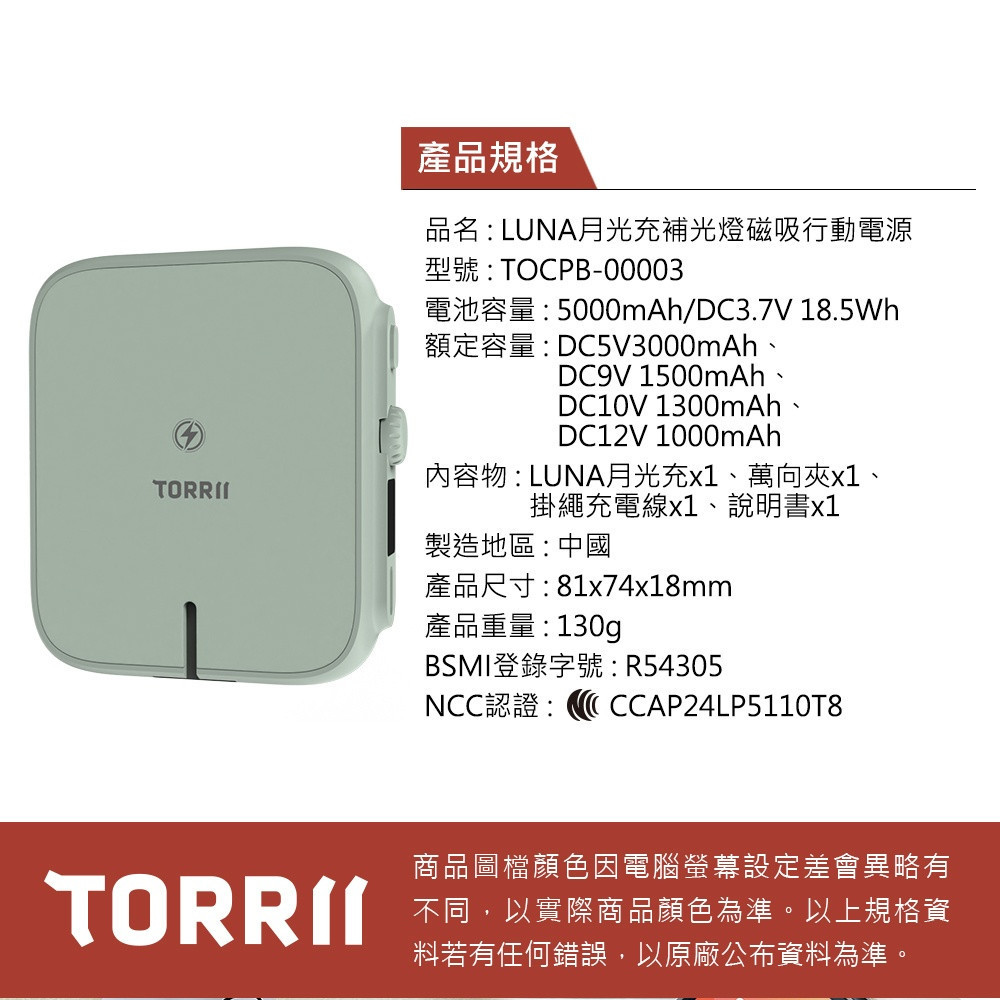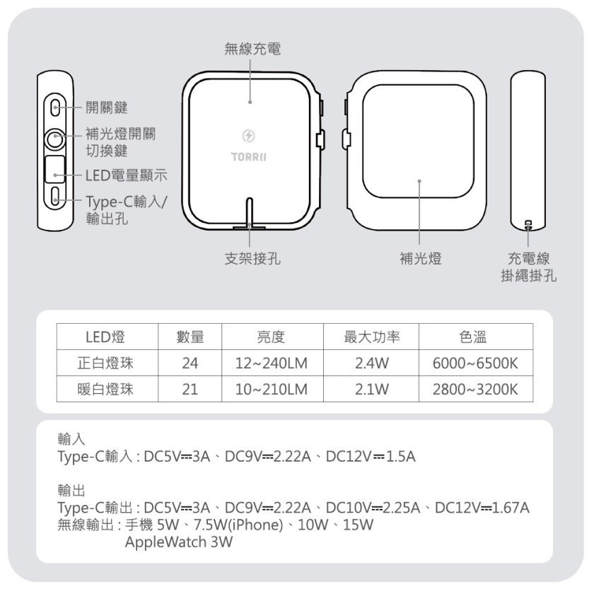 商品詳情 Torrii LUNA補光燈磁吸行動電源 -帶補光燈,3種色溫-七重安全保護機制-附可折疊站立支架-QC、PD快充-15W磁吸充電-18.5Wh符合航空標準,可上飛機 Torrii LUNA補光燈磁吸行動電源 TWD $1,380 TWD$ 1,380