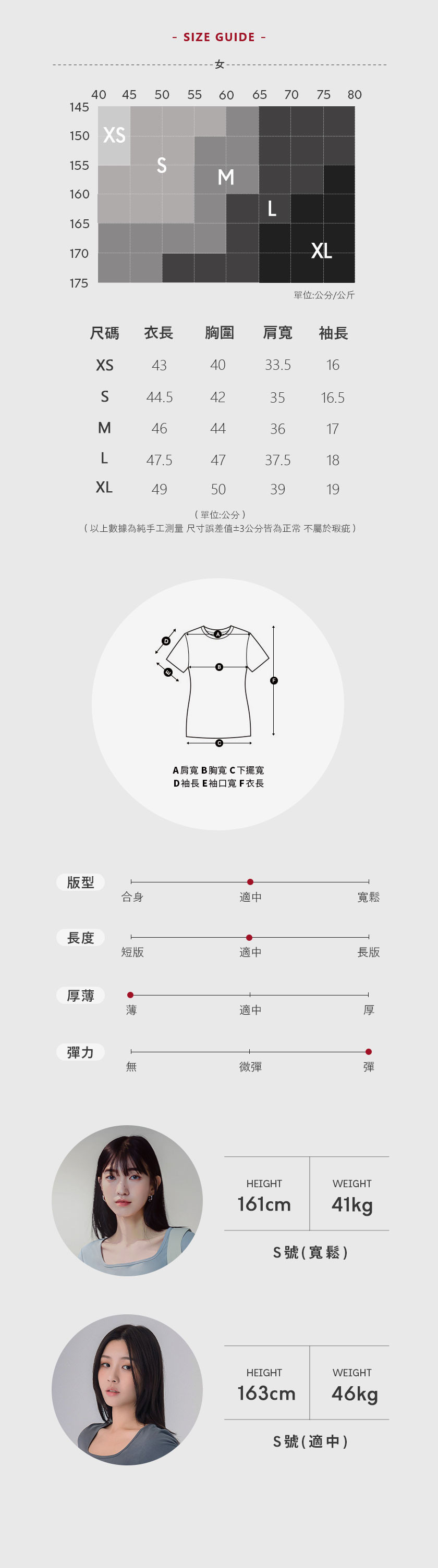 商品詳情 HUE 方領冰磁除臭T -SGS認證 涼感數值達0.22-SGS認證 99.9%菌源清除 強效抗菌除臭-SGS認證 超強透氣 均值高達654mm/sec-SGS認證 甲醛測量報告 0含量 安全保障-良好的吸濕透氣性能 可快速排汗-彈性佳 材質親膚 輕量化-方領設計,修飾肩頸比例-收腰剪裁,凸顯腰身-包邊領口,耐洗耐穿 HUE 方領冰磁除臭T TWD $330 TWD$ 330