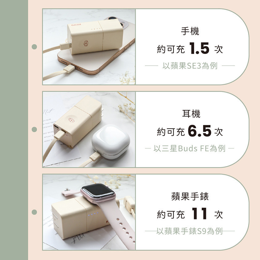 -3+1+1,行動電源+充電器+掛繩自帶線