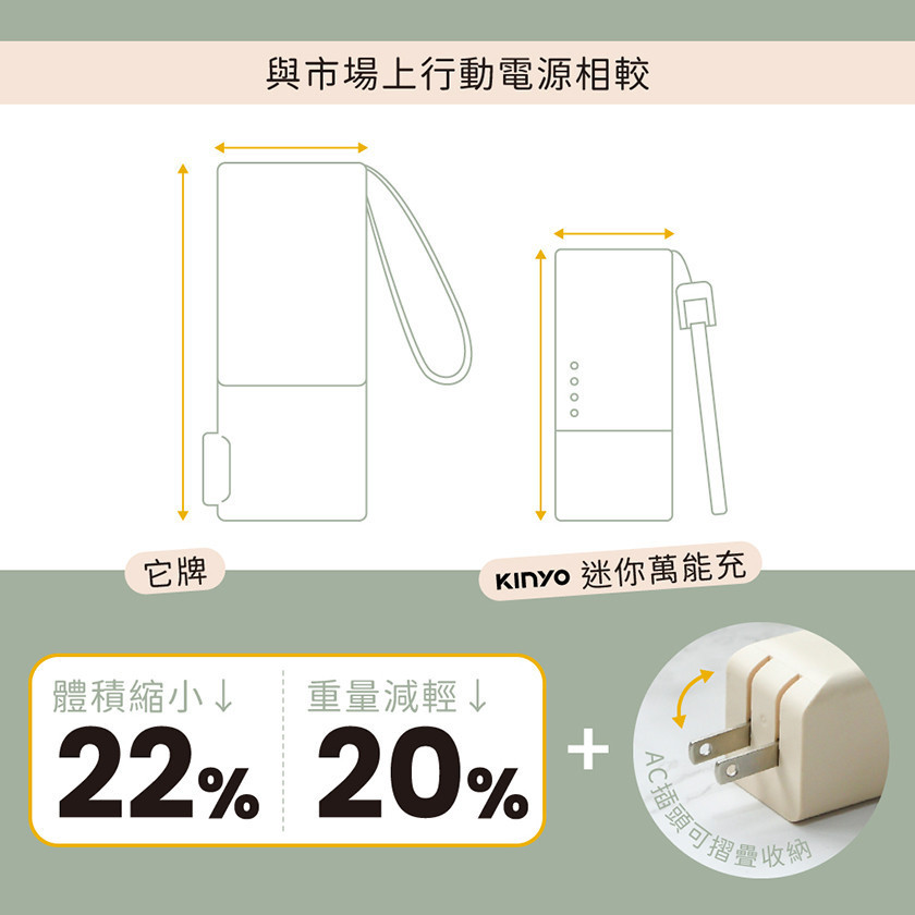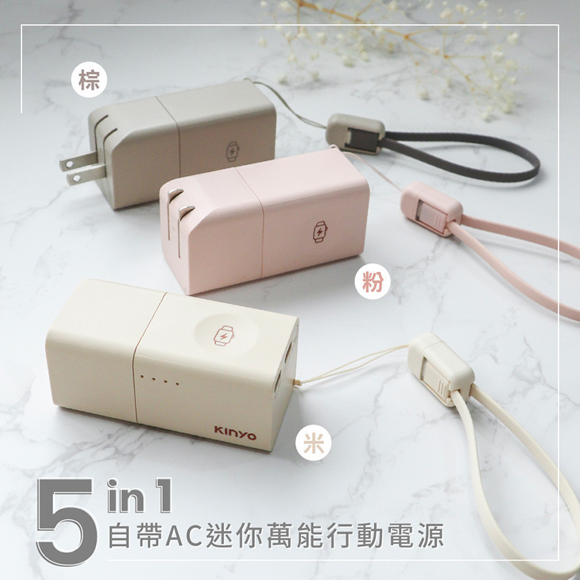 KINYO 5in1自帶AC迷你萬能行動電源