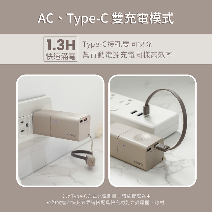 -AC、Type-C雙蓄電方式,AC插頭可摺疊收納