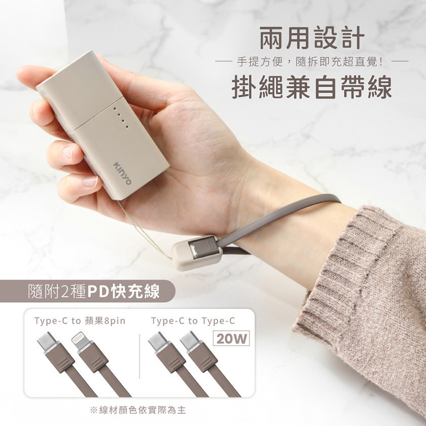 -掛繩兼自帶線兩用設計,PD 20W快充線,隨拆即充,不需額外帶線