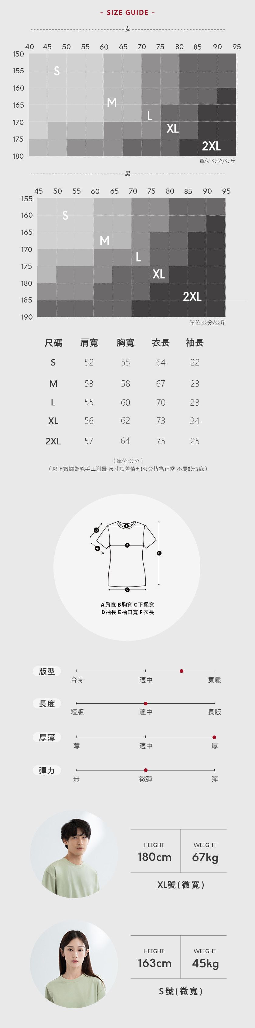 商品詳情 冰磁透涼厚磅短T -SGS認證 涼感數值達0.172-寬鬆落肩版型 休閒百搭-透氣、吸濕、柔軟、彈性佳-厚磅紮實面料 不只涼 還挺-多顏色選擇 男女可穿 冰磁透涼厚磅短T TWD $490 TWD$ 490