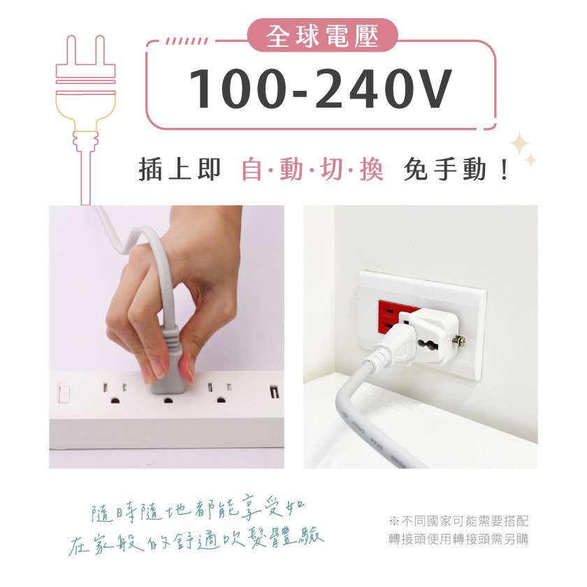 -100-240V全球電壓自動切換,隨插即吹,使用地區不受限