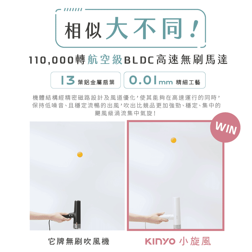 KINYO 全球電壓摺疊無刷吹風機