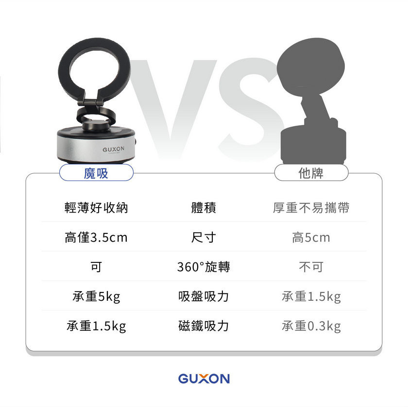 商品詳情 GUXON MOC魔吸智慧真空磁吸支架 -好摺疊,輕巧不佔面積 -65Kpa超強磁感應吸附,電動抽氣不滑落 -隨心所欲,各種角度、隨心操作,不傷表面 -隨處可吸,1鍵洩壓快速卸除 -適用材質:車用內裝、玻璃表面、鏡面、磁磚、金屬、大理石、木製桌椅等光滑平整表面 GUXON MOC魔吸智慧真空磁吸支架 TWD $690 TWD$ 690
