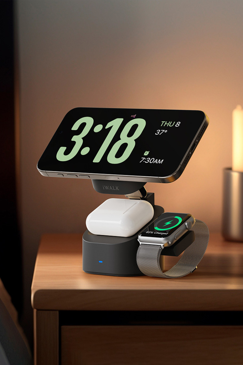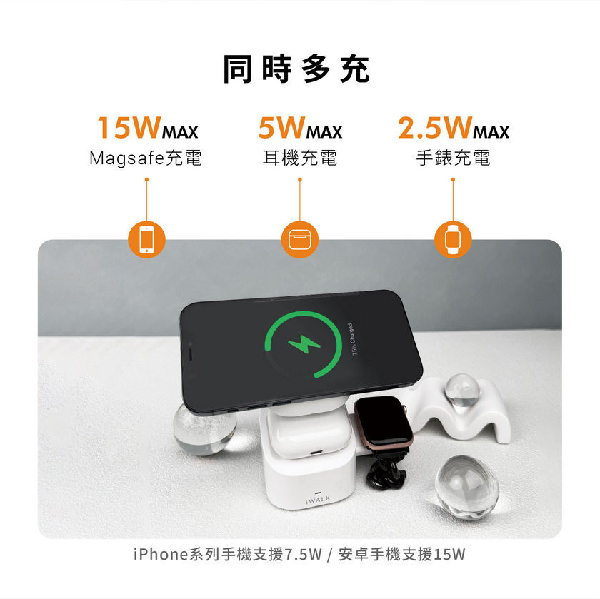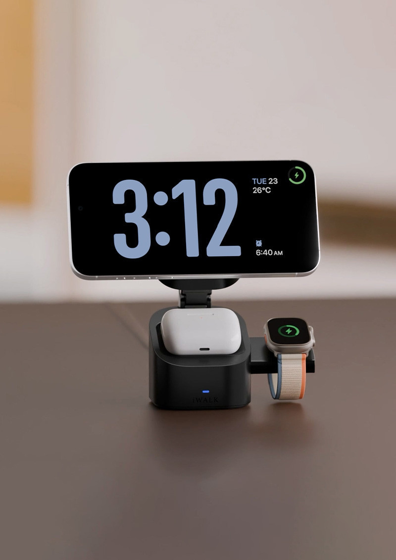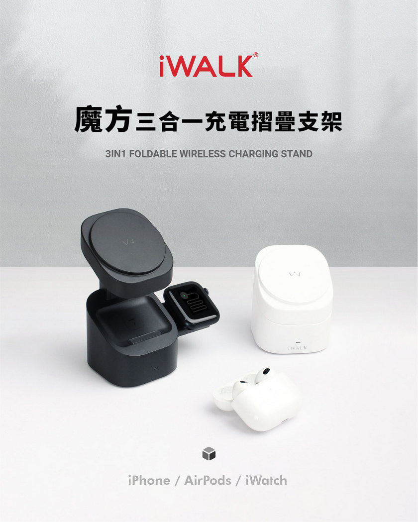 商品詳情 iWALK 魔方三合一充電折疊支架 -同時齊充3種設備:手錶、耳機、手機(支援磁吸magsafe) -輕巧體積,側邊1鍵展開收起,居家生活、旅行在外,隨帶隨充 -支援IOS7.5W,安卓15W -IWALK連接你我,美好科技生活 iWALK 魔方三合一充電折疊支架 TWD $950 TWD$ 950