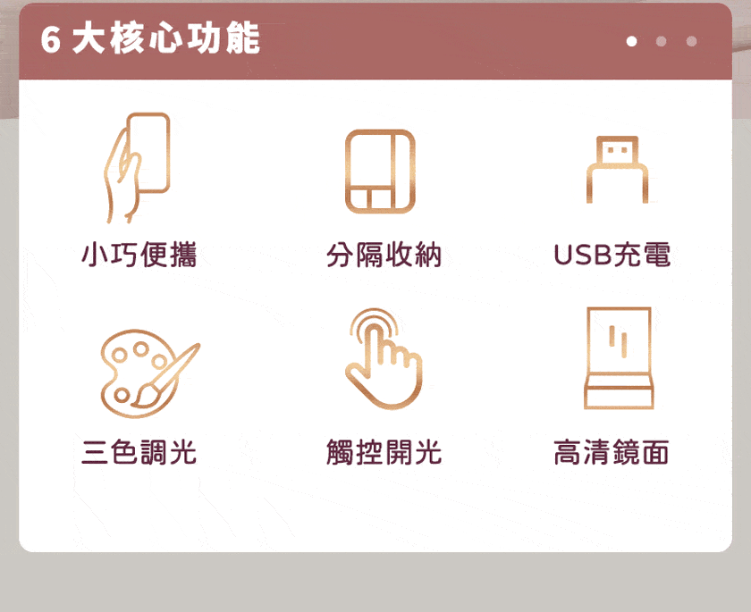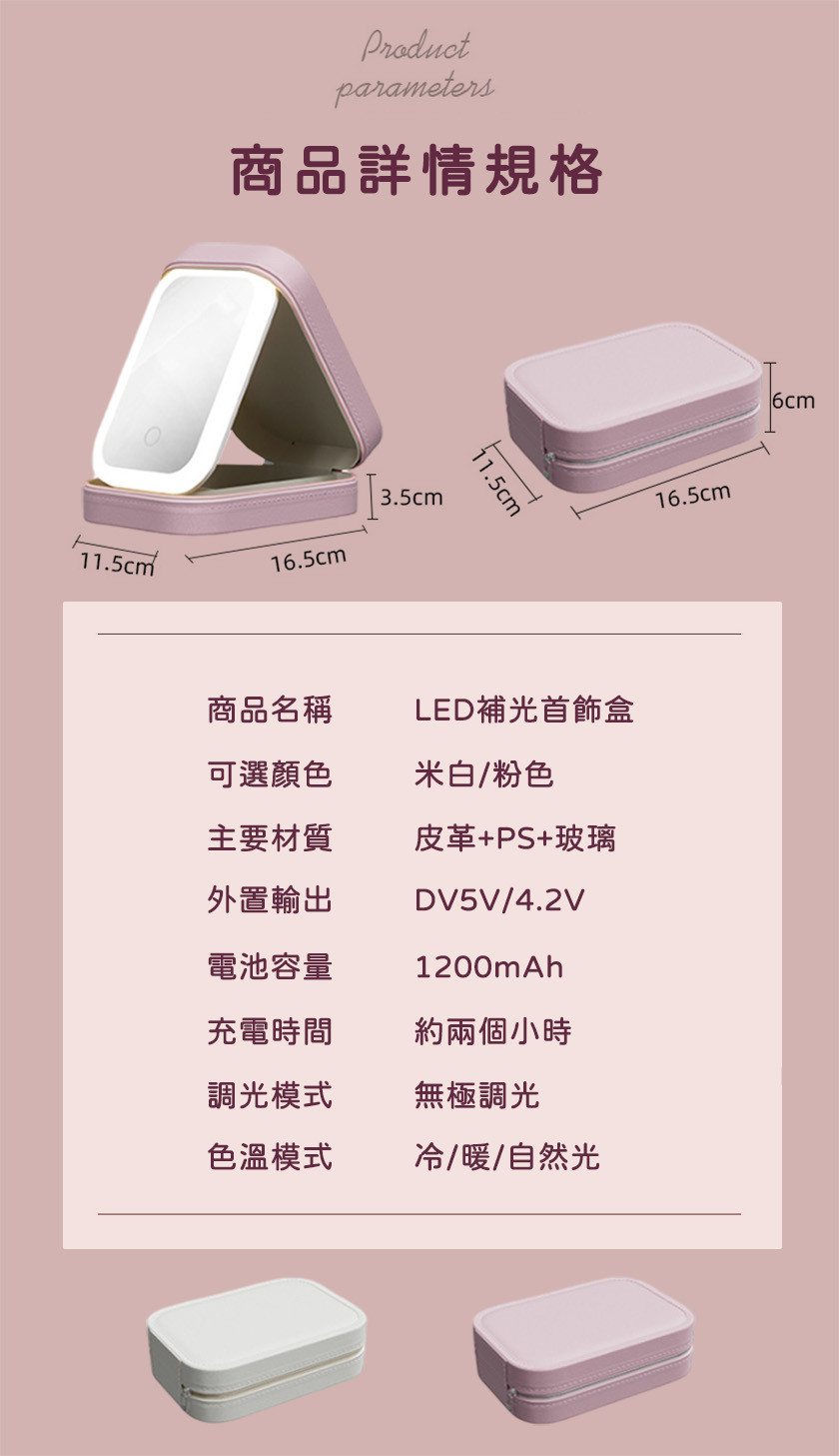 商品詳情 RIMO 多功能隨身化妝首飾盒 -觸控式LED燈光,3色光源自由切換 -1200mAh內建電池,Type-c充電,1週只需充1次 -分隔設計,完美收納 -小巧便攜,外出攜帶無負擔 -拉鍊順滑不卡頓 RIMO 多功能隨身化妝首飾盒 TWD $699 TWD$ 699