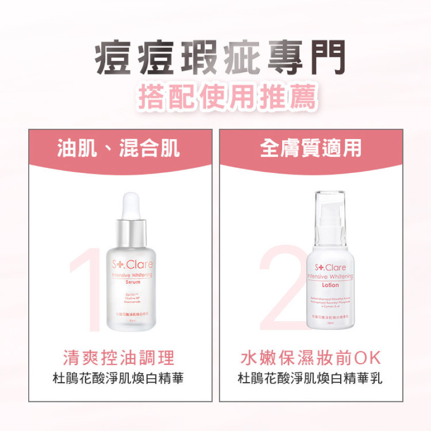 商品詳情 St.Clare聖克萊爾 杜鵑花酸淨肌煥白精華乳 -調理油痘粉刺,淨肌細緻光滑-告別毛孔瑕疵暗沉,勻亮膚色更淨白-專利杜鵑花酸衍生物,更溫和更有效-保濕舒緩配方,不刺癢、不起屑-全膚質適用,輕盈好吸收不黏膩 🔴依消保法公告此為個人衛生用品,基於衛生考量無法接受退換,請同意再下單。 St.Clare聖克萊爾 杜鵑花酸淨肌煥白精華乳 TWD $780 TWD$ 780