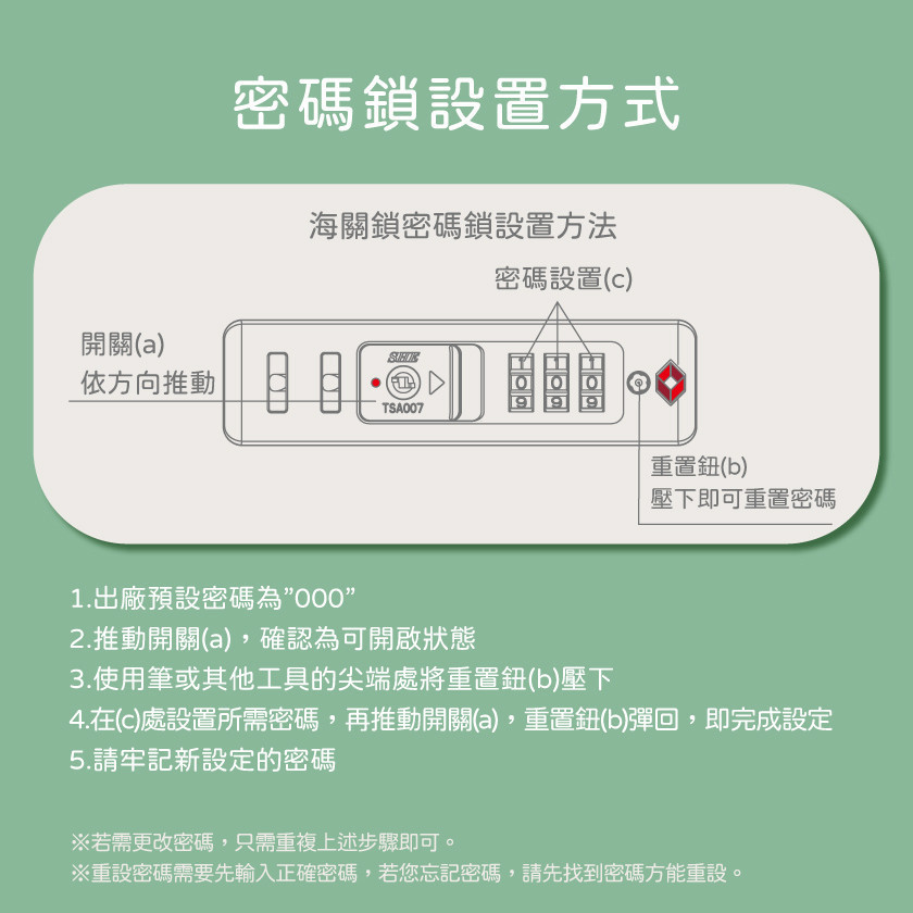 -內嵌式TSA007海關鎖,3位數共1000組密碼組合