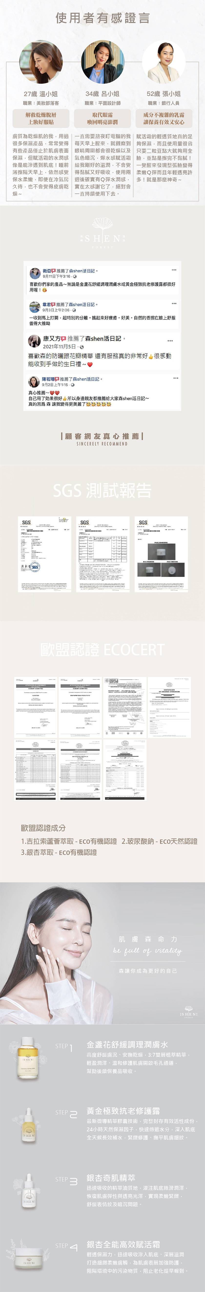 -選用歐盟ECOCERT有機植物萃取,改善肌膚的老化問題, 高度舒緩安撫乾燥、粗糙、泛紅敏弱、暗沉肌膚,同時收斂毛孔、調理肌膚油脂分泌