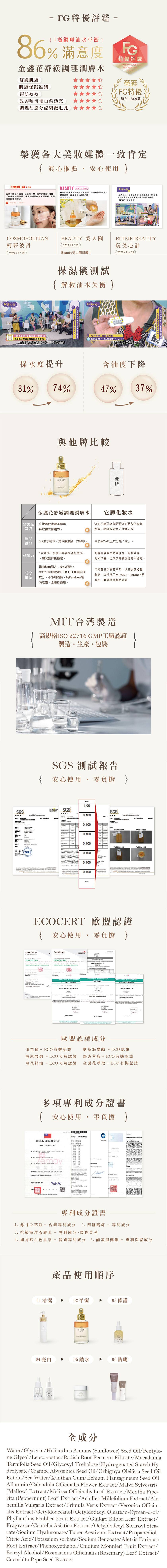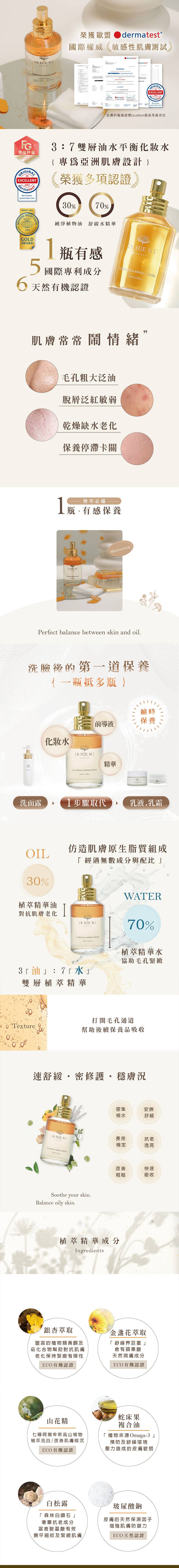 -仿造肌膚原生脂質組成,3:7黃金比例雙層油水精華植萃化妝水