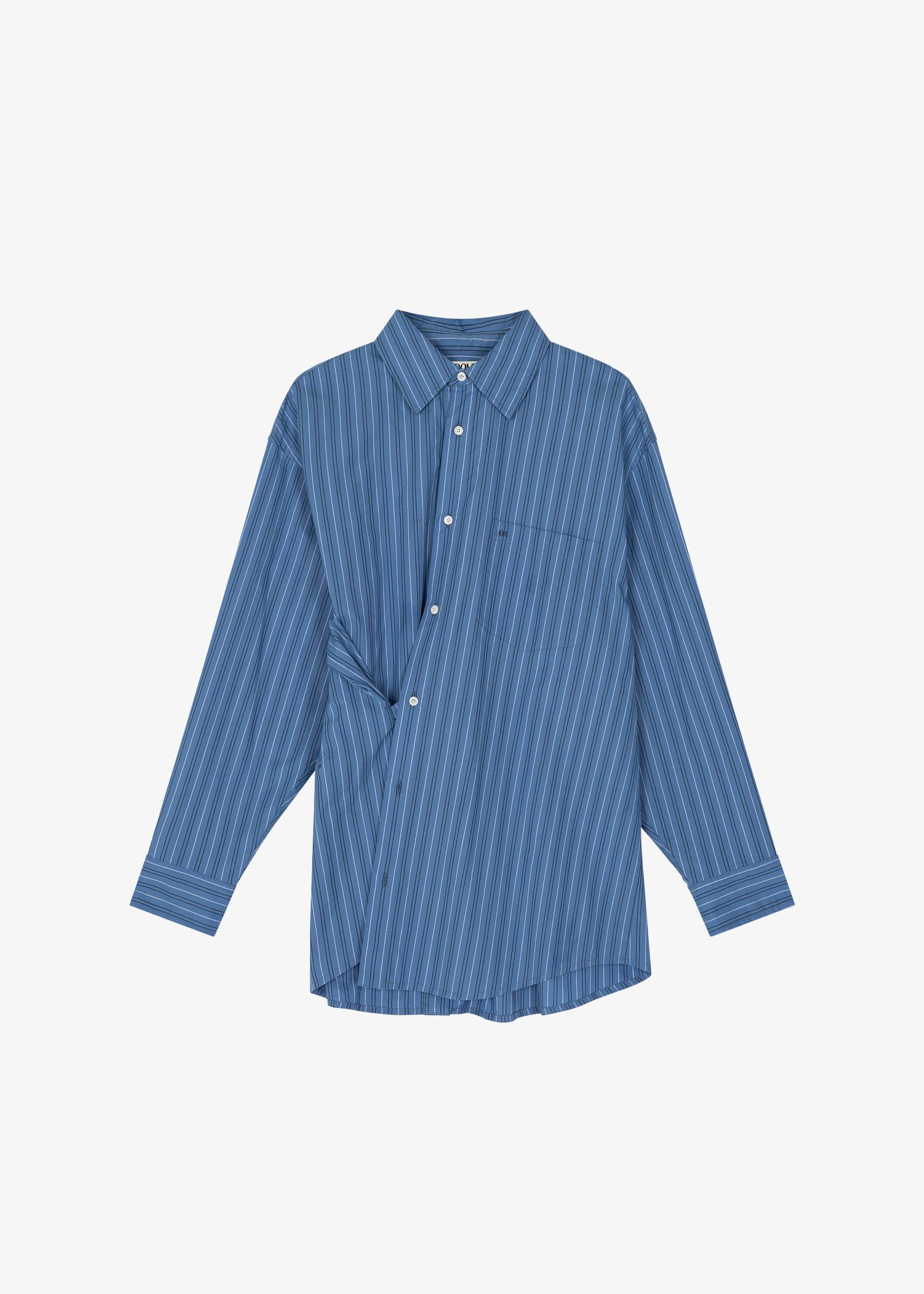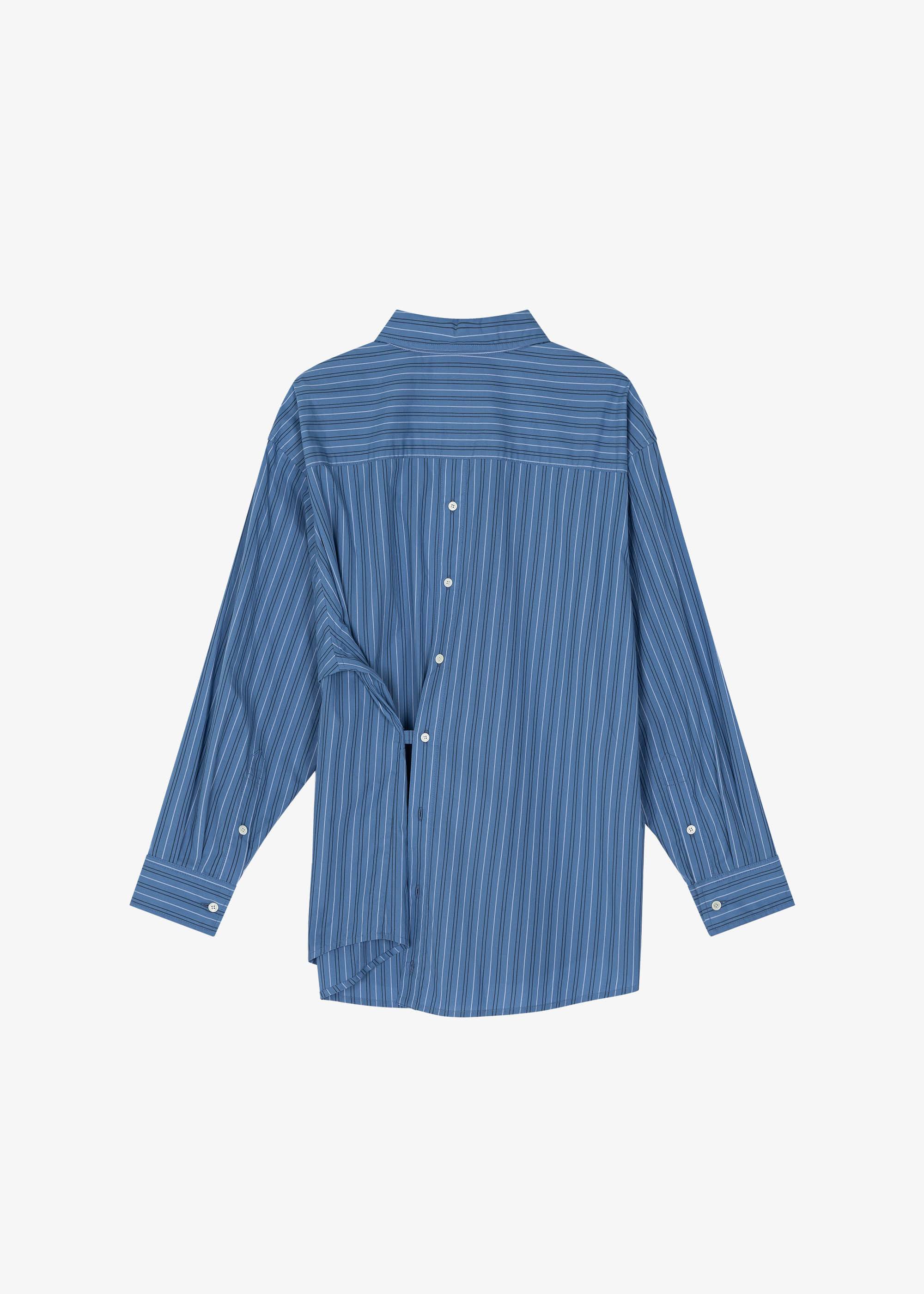 -它可以透過在背面中央用一個開放式細節閉合來設計為基本款襯衫,並且是一款可以打開或用側面紐扣交叉固定的單品,以形成不平衡的輪廓並允許各種造型
