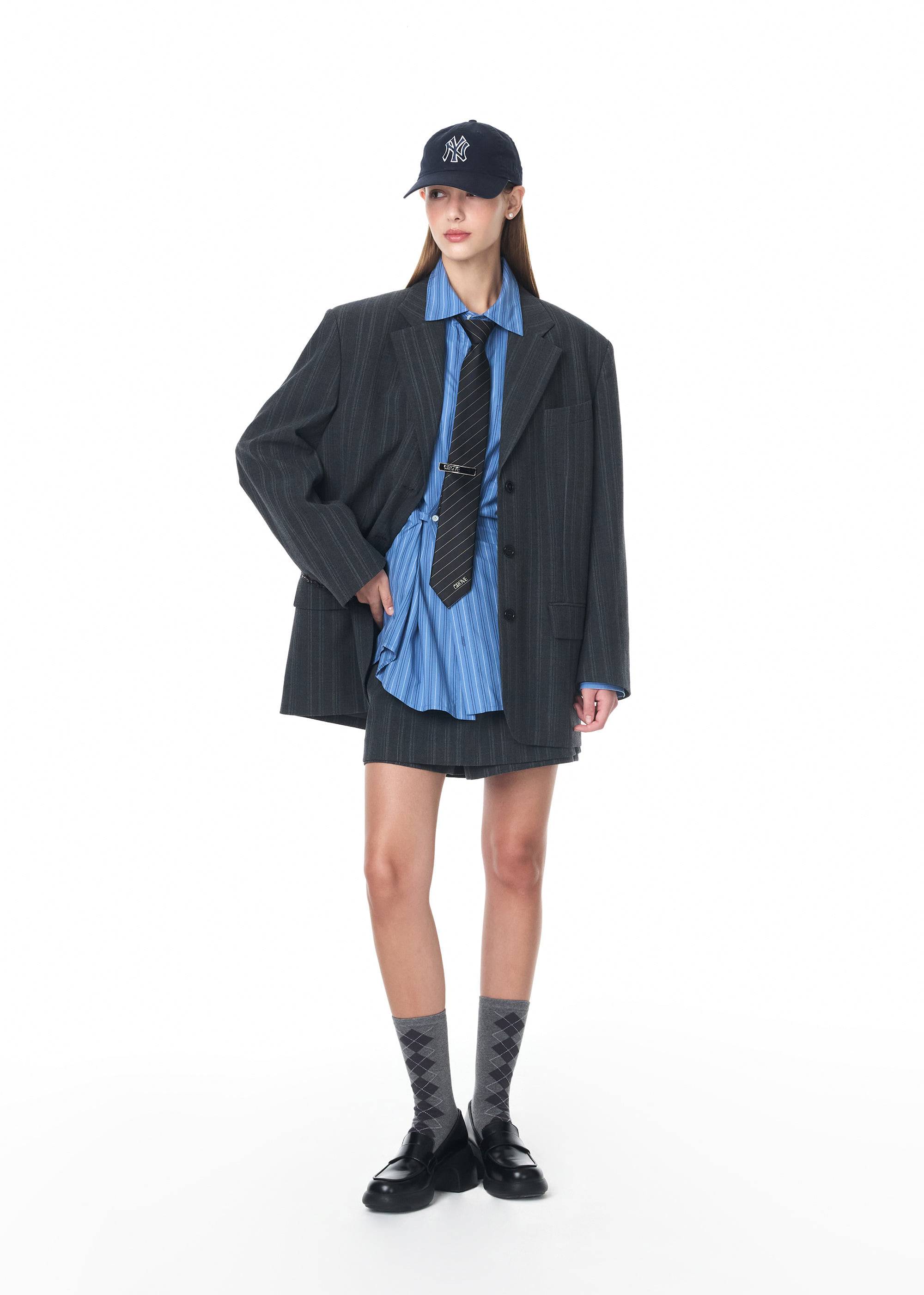 -側邊的交叉紐扣營造出不平衡的輪廓,打造時尚造型