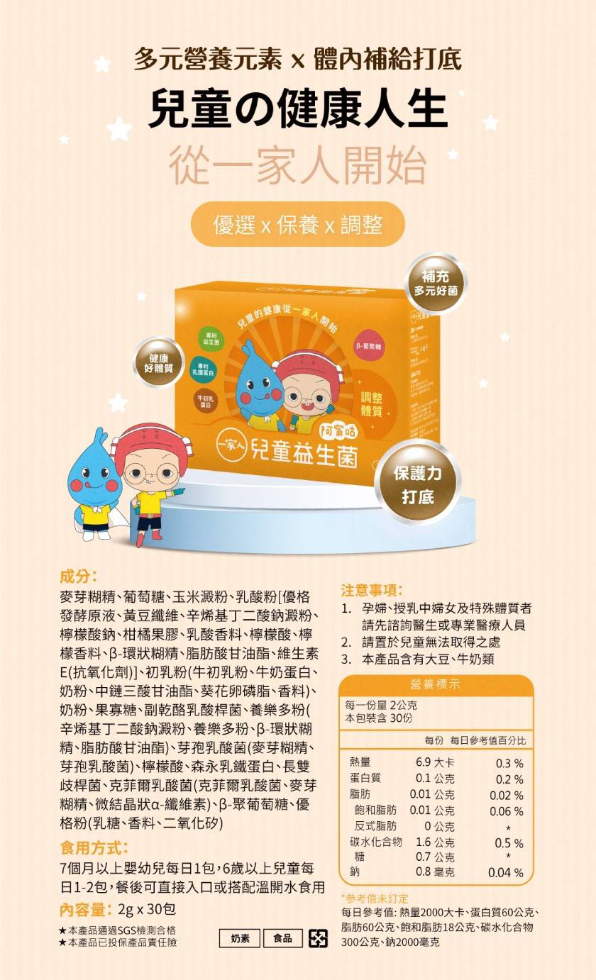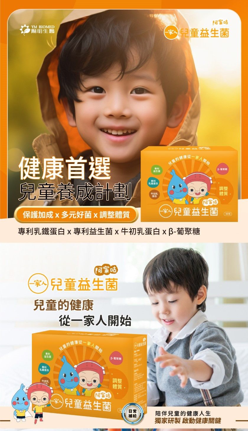 商品詳情 陽明生醫 一家人兒童益生菌 -天天補充好菌,幫助健康打底-專利乳鐵蛋白、專利益生菌、牛初乳蛋白、β-葡聚糖-兒童的健康,從一家人開始 陽明生醫 一家人兒童益生菌 TWD $1,060 TWD$ 1,060