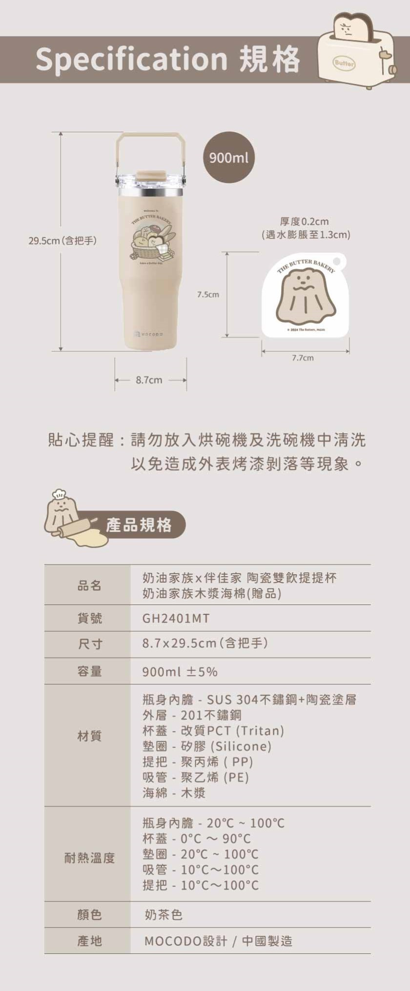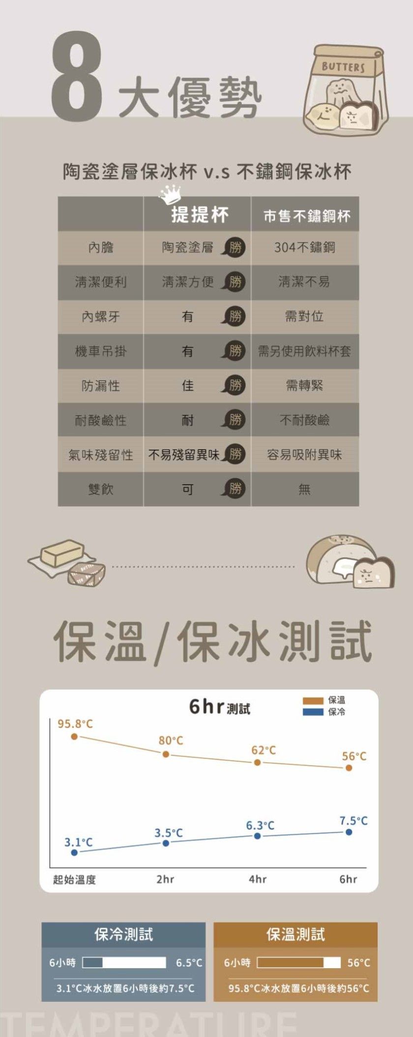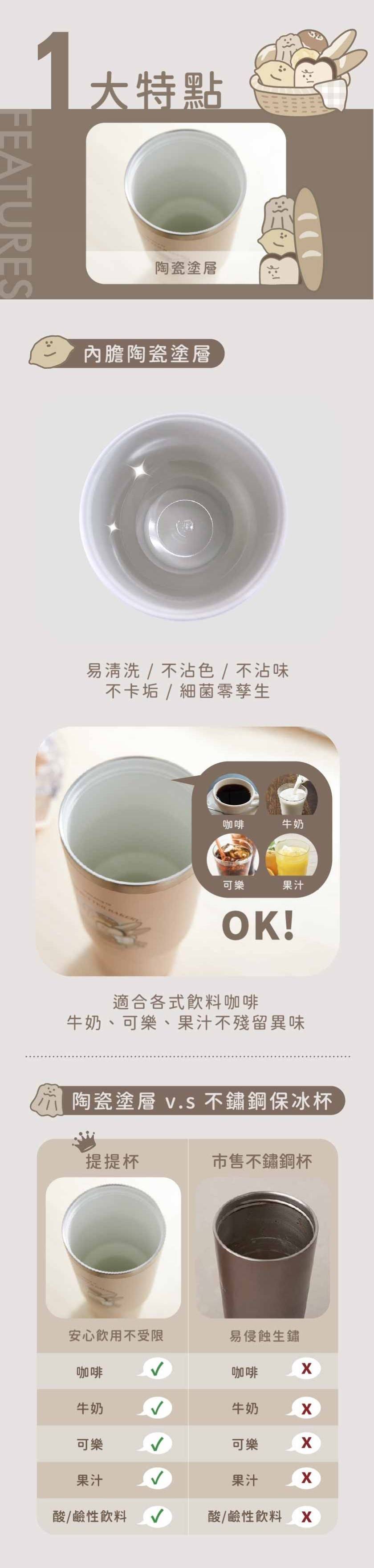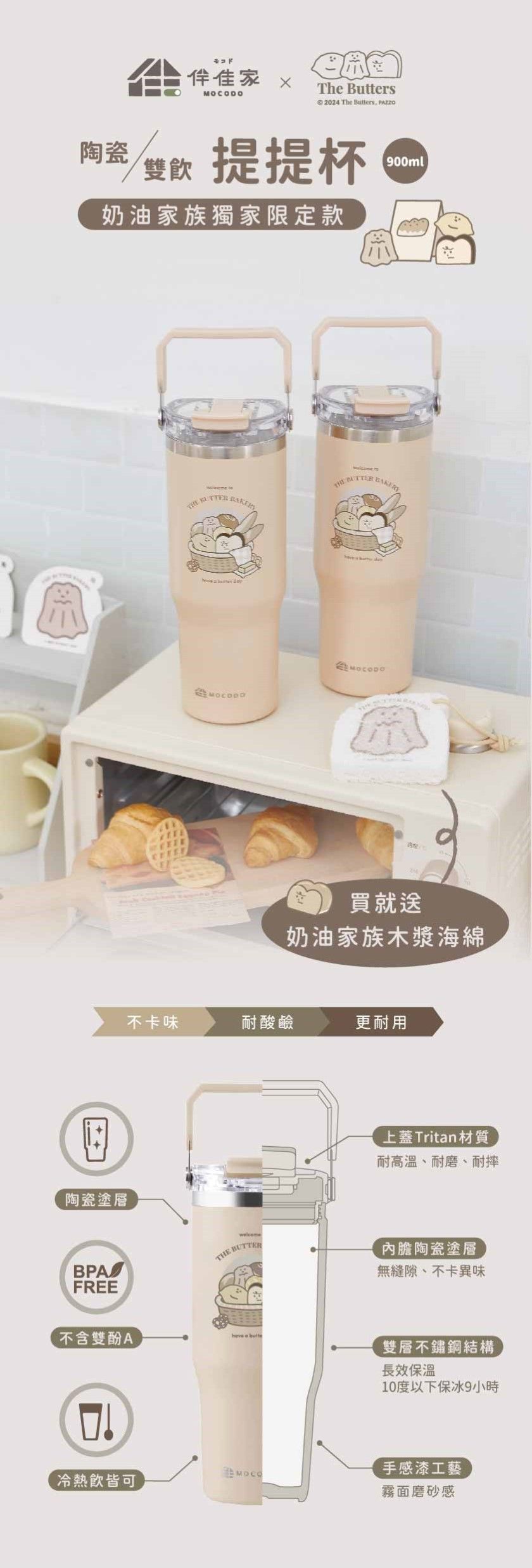 商品詳情 伴佳家 陶瓷雙飲提提杯.奶油家族聯名 -長效保溫 -10°C以下保冰長達9小時-咖啡、牛奶不易殘留味道-雙層真空,有效延長飲品風味-便利翻蓋,直飲、吸飲兩用-大提把設計,好提好收 -矽膠底墊,防滑防刮-9cm寬口徑,利沖泡好清洗 🔴依消保法公告此為個人衛生用品,基於衛生考量無法接受退換,請同意再下單。 伴佳家 陶瓷雙飲提提杯.奶油家族聯名 TWD $990 TWD$ 990