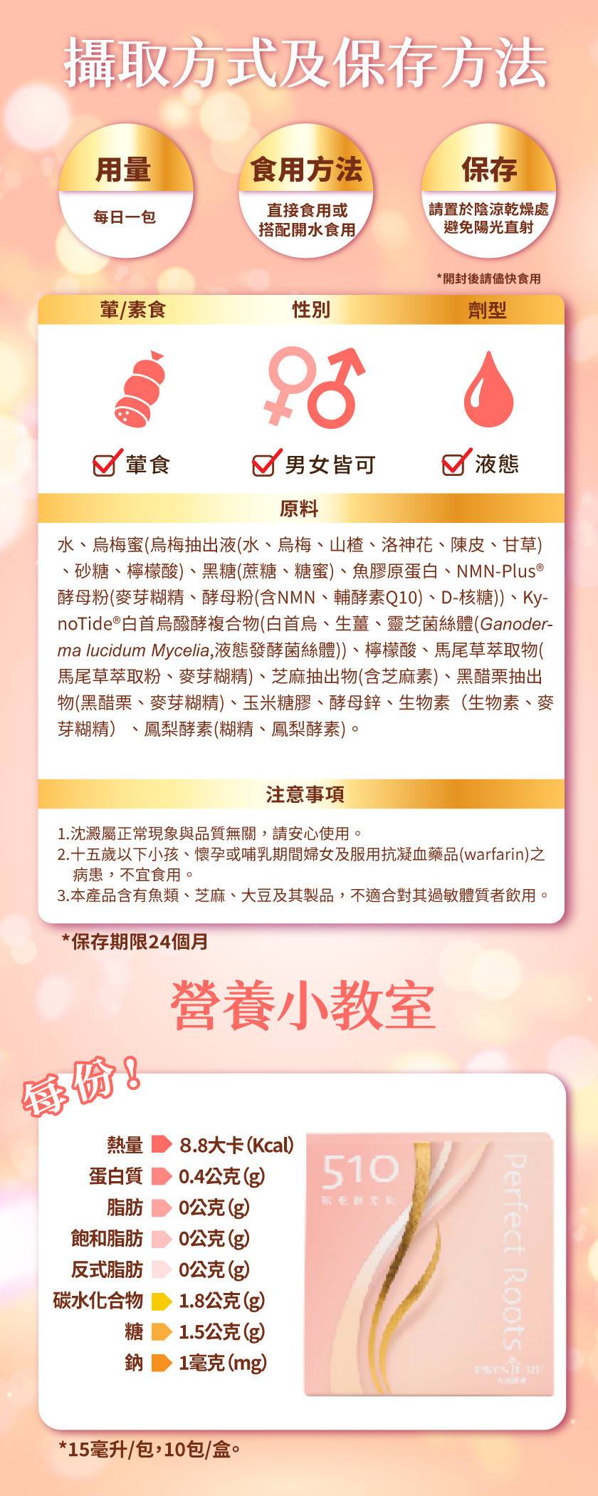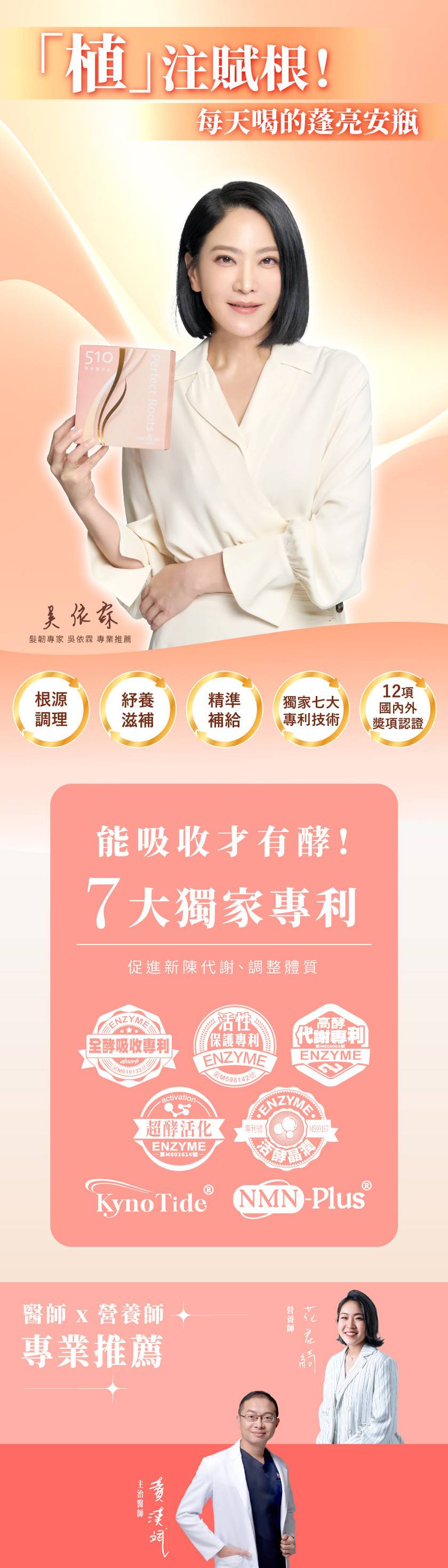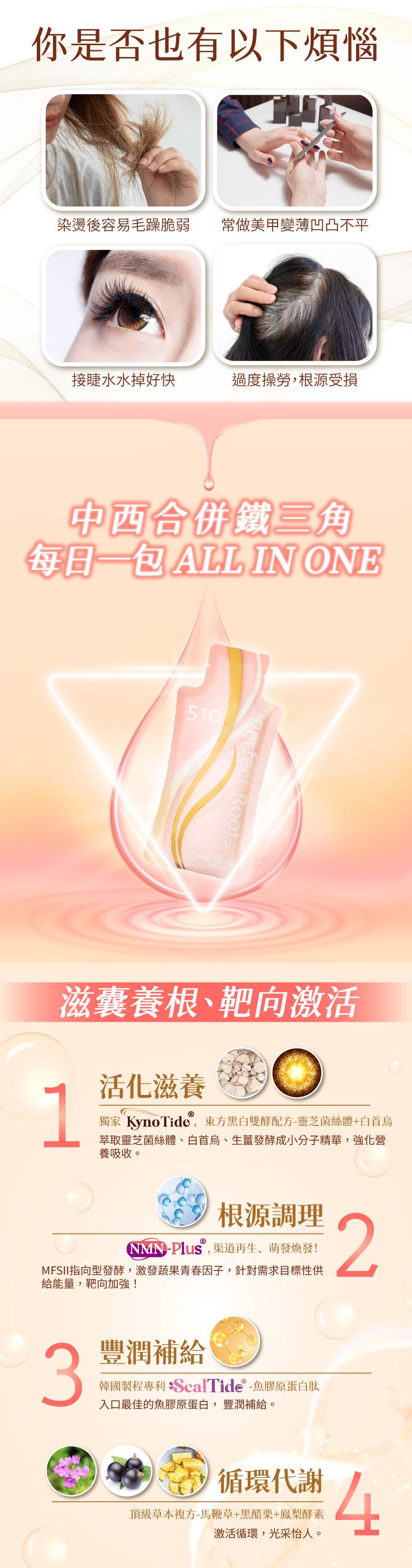 -獨家 KynoTide®發酵技術,萃取黑靈芝、白首烏、生薑發酵成小分子精華,活化囊窟、強化營養吸收 -根源調理:MFSII全型態醱酵