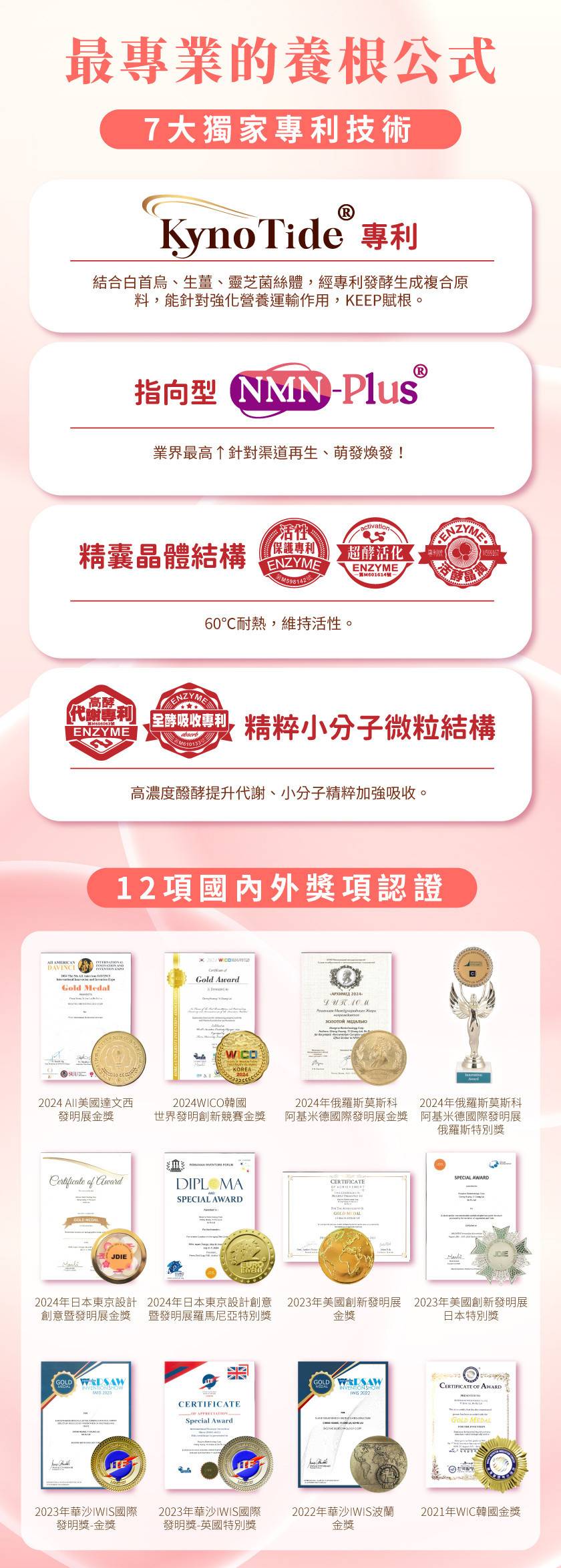 -多國獎項認證NMN PLUS,利用MFSII菌株及發酵技術,激發蔬果青春因子,爭對需求目標性供給能量,靶向加強