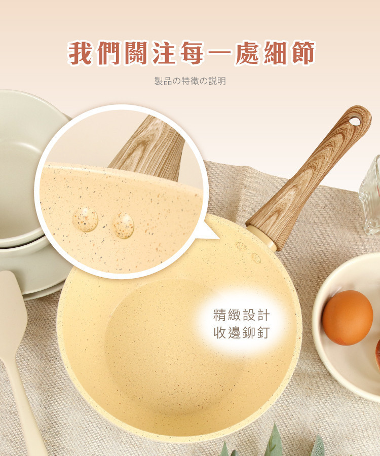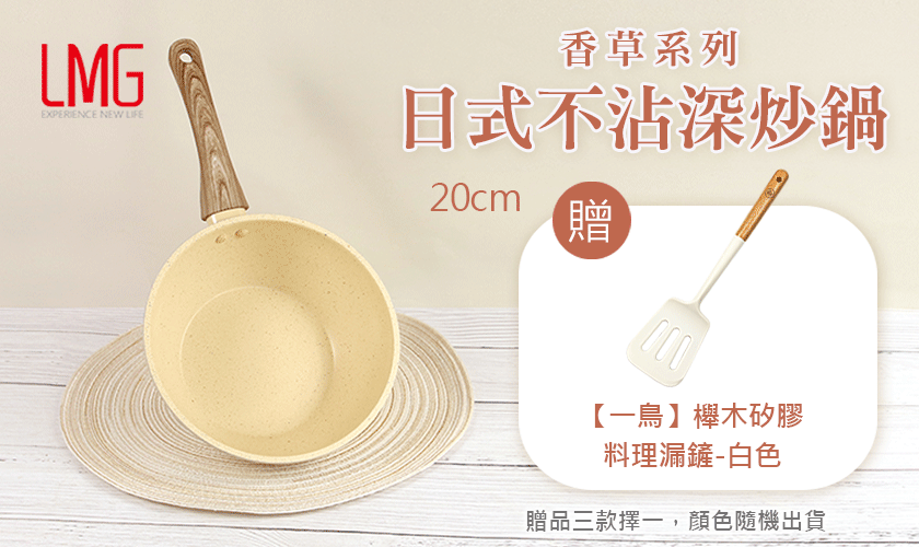 商品詳情 LMG 日式香草不沾深炒鍋無蓋20cm -香草色系全新上市 -優質不沾塗層設計,少油即可不沾且容易清洗 -電木手柄耐熱防滑,增強使用安全性 -煎、炒、炸、煮、燉皆能一鍋完成 -設計輕便,不佔空間,適合小家庭或小資族 -複底導熱佳,不挑爐具 LMG 日式香草不沾深炒鍋無蓋20cm TWD $599 TWD$ 599