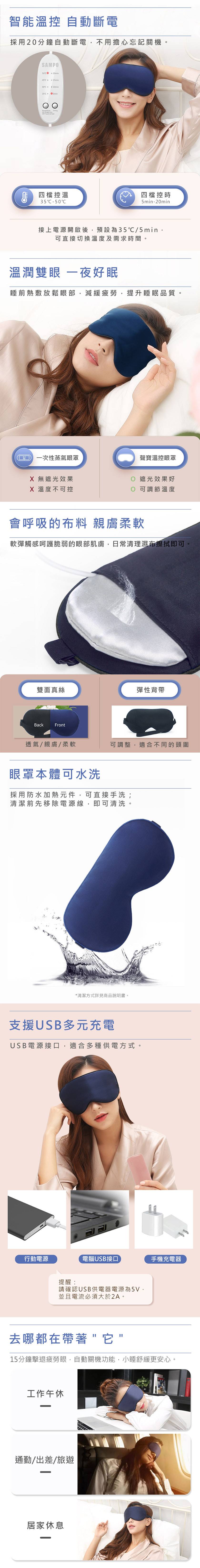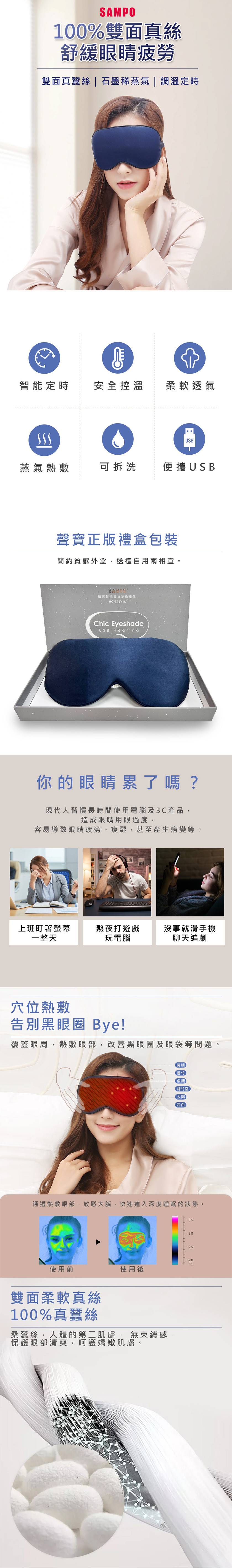 SAMPO聲寶 智能真絲熱敷眼罩,NS愛豐盛購物—心愛心藝術文化