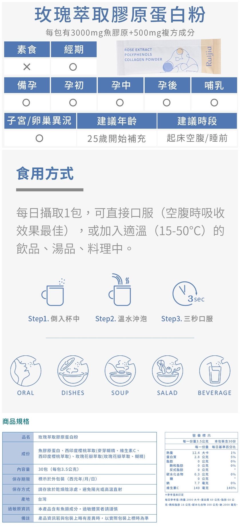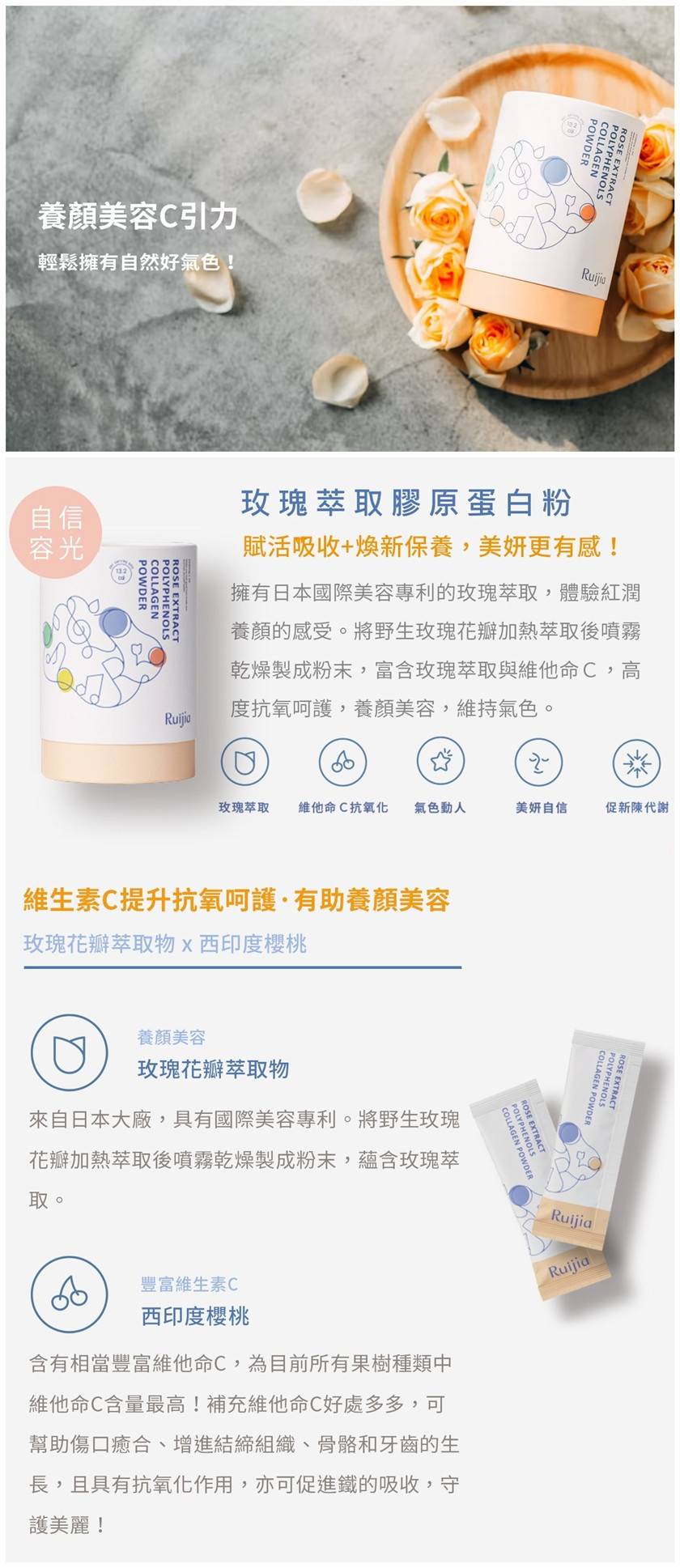 商品詳情 Ruijia露奇亞 玫瑰萃取膠原蛋白粉 -日本NIPPI大廠,成分安全可追溯 -獨家水解技術好入口無腥味 -日本國際美容專利的玫瑰花萃取,抗氧化自然好氣色 -西印度櫻桃維他命C高含量,趕跑黯淡促進膠原蛋吸收 Ruijia露奇亞 玫瑰萃取膠原蛋白粉 TWD $1,380 TWD$ 1,380