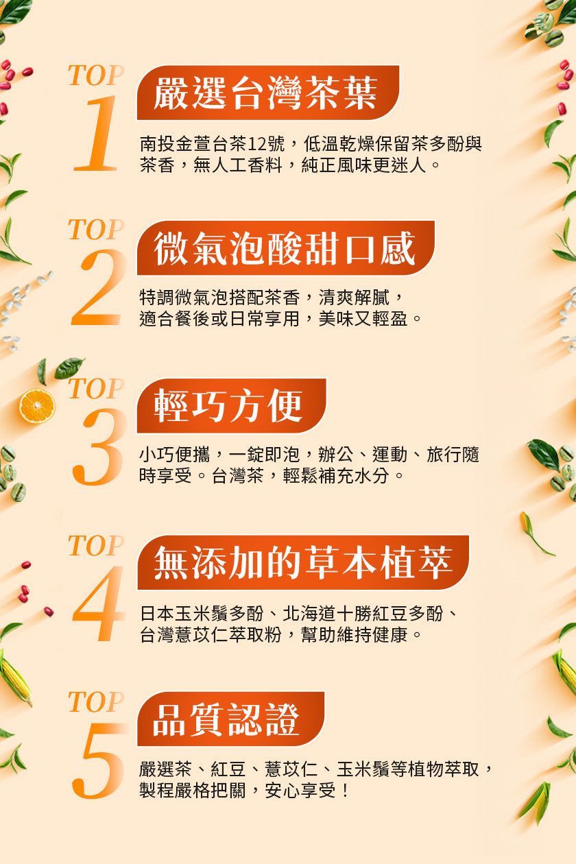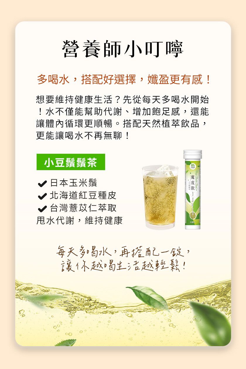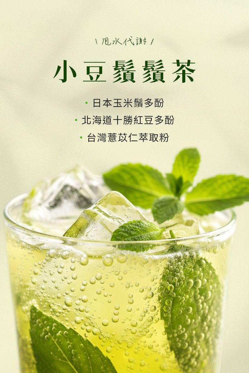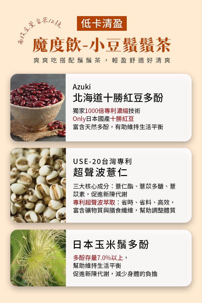 -採用南投金萱台茶12號加上日本玉米鬚多酚、北海道十勝赤小豆、薏苡仁,促進甩水代謝