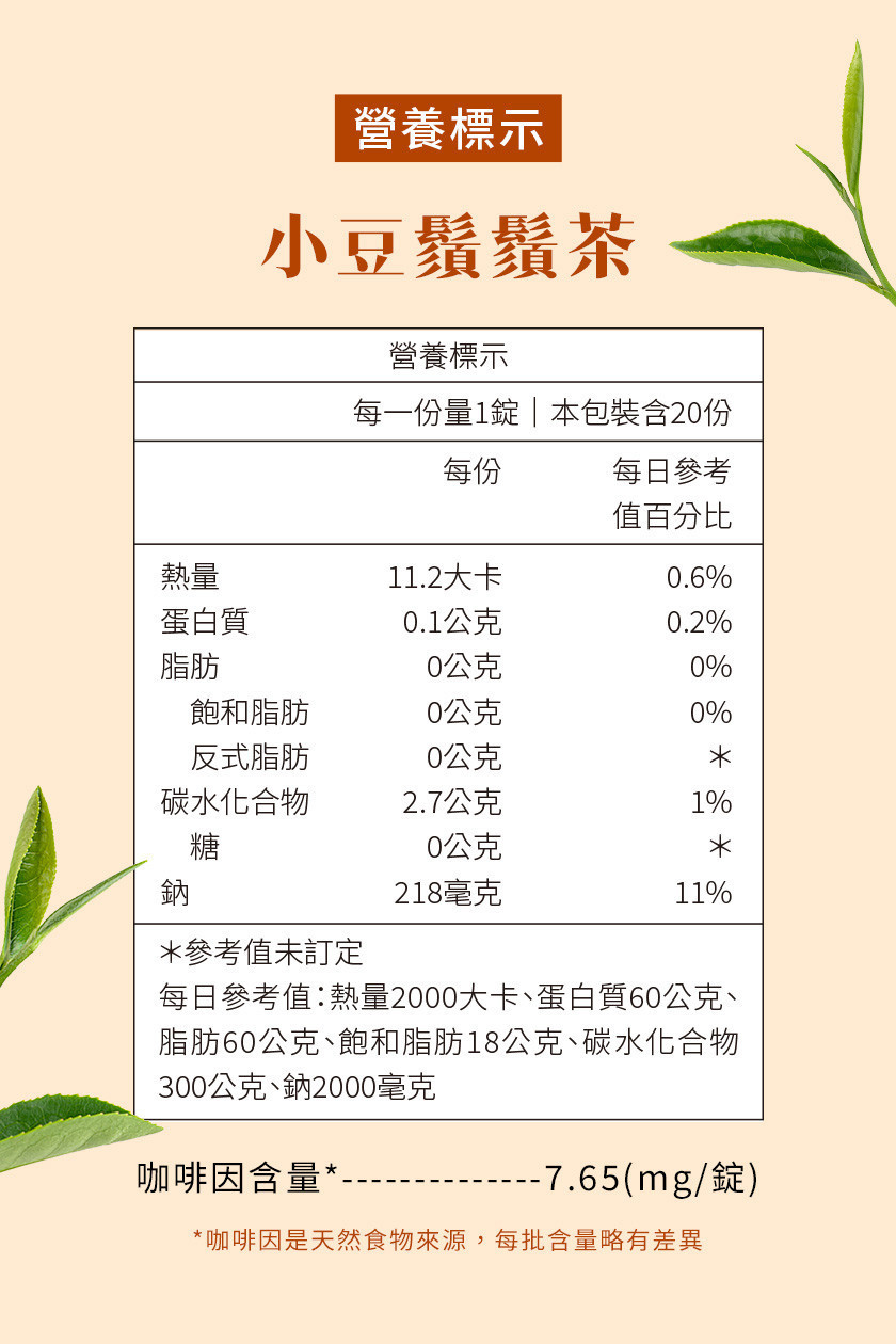 成分:D-山梨醇、酒石酸、碳酸氫鈉、金萱烏龍茶粉、聚乙二醇、玉米鬚萃取粉、醋磺內酯鉀(甜味劑)、蔗糖素(甜味劑)、薏苡仁萃取粉(薏苡仁、麥芽糊精)、聚乙烯吡咯烷酮、紅豆萃取物(麥芽糊精、紅豆萃取物)