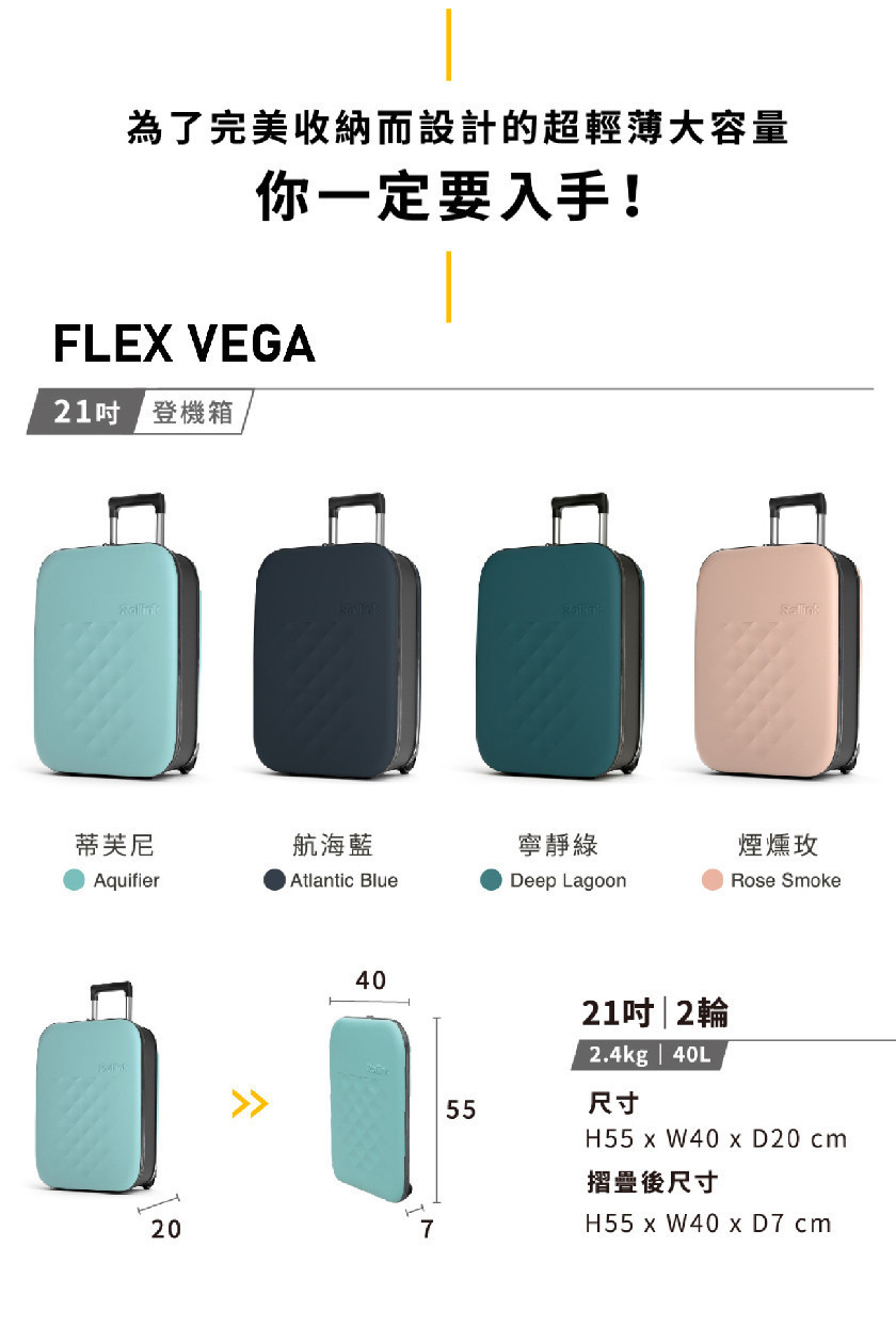 品牌品名:Rollink 可摺疊Flex VEGA行李箱VEGAⅡ21吋兩輪