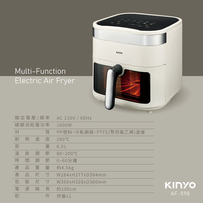 品牌品名:KINYO 觸控式大容量氣炸鍋6.5L