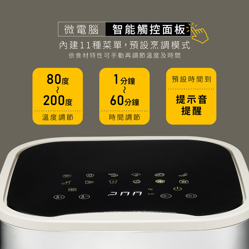 -內建11種菜單,預設烹調模式,依食材特性可手動再調節溫度及時間