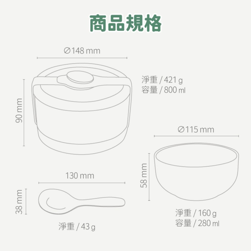內容物:便當盒*1+湯碗*1+湯匙*1+扣帶隔熱套*1