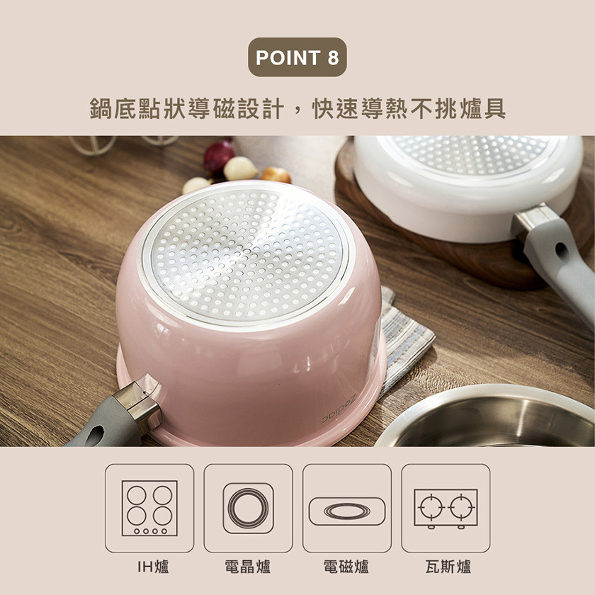 -鍋底點狀導磁設計,快速導熱不挑爐具