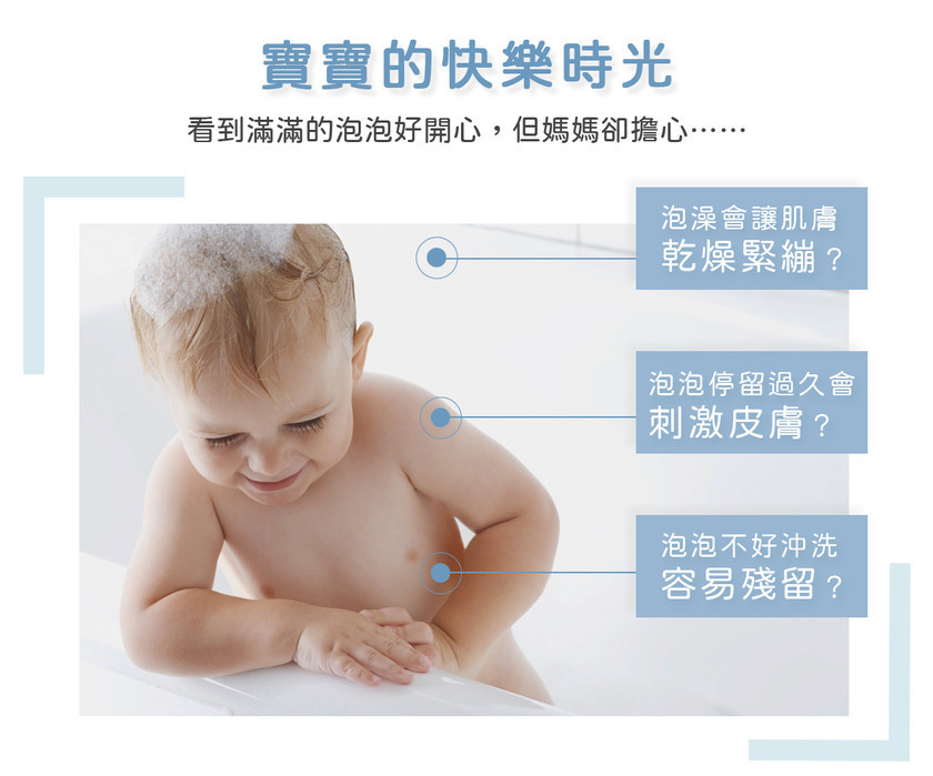 -搭配植物性界面活性劑,泡澡後清爽不殘留,打造綿密豐盈泡泡,讓寶寶洗澡更有趣
