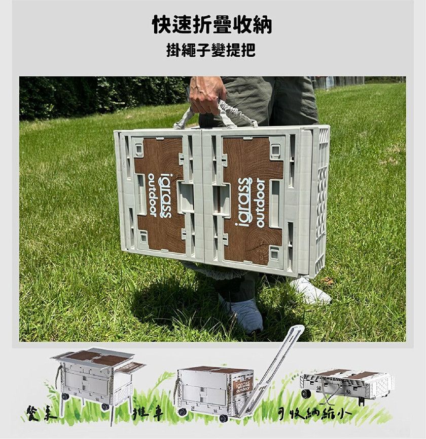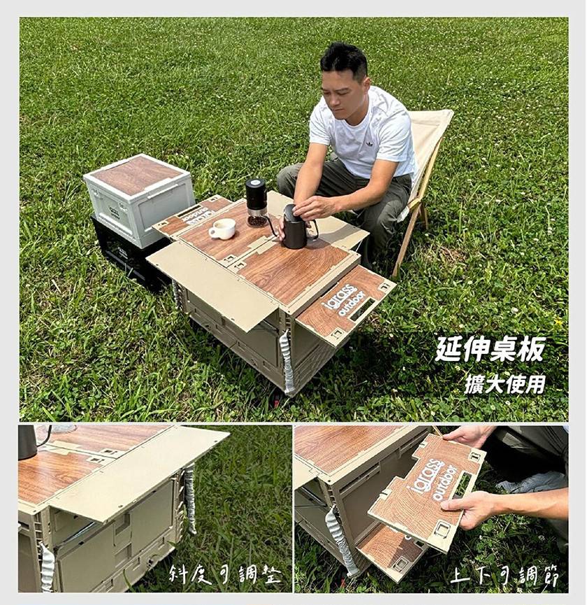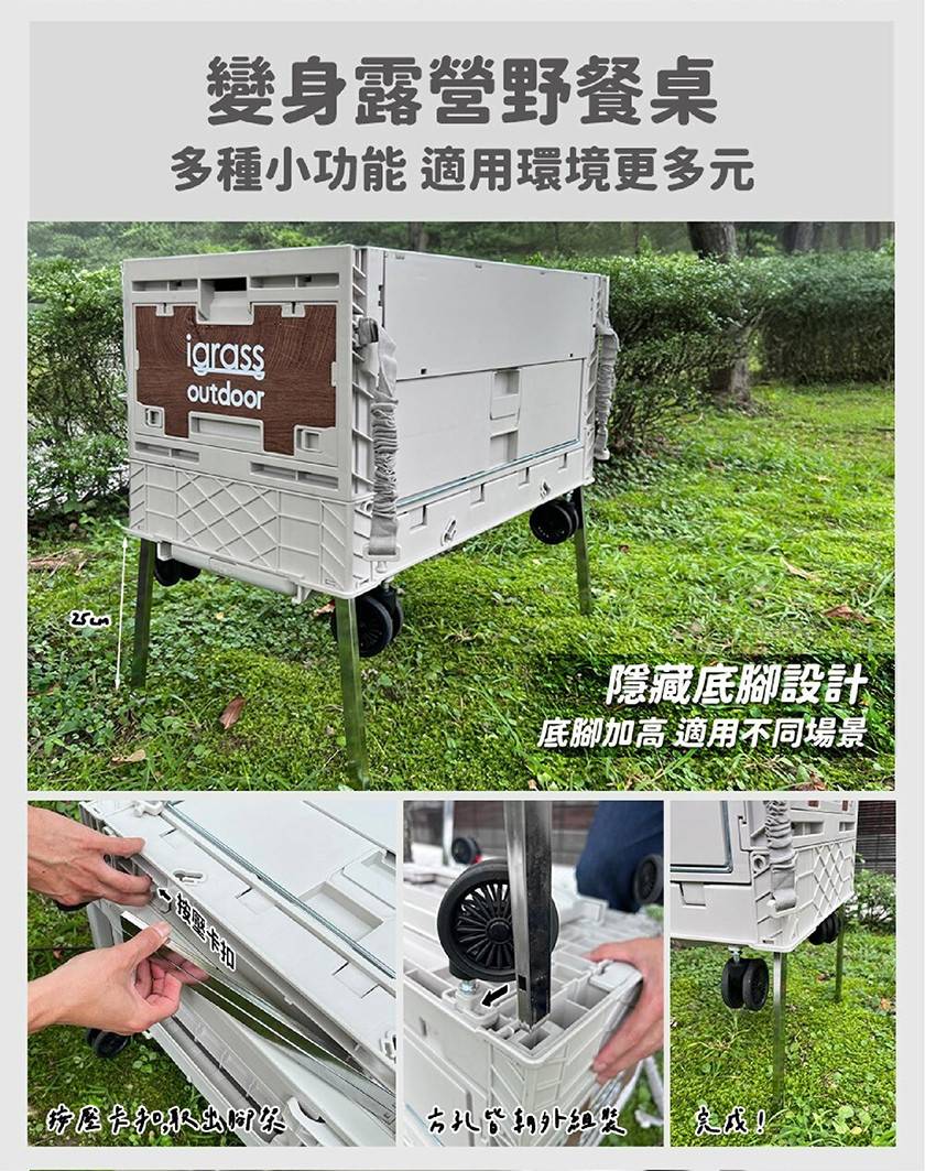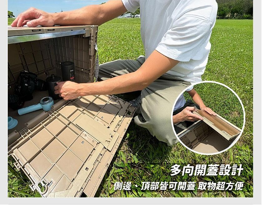 1.解開雙邊安全卡扣,依序將四邊箱體往上展開平放,兩側內含隱藏上蓋